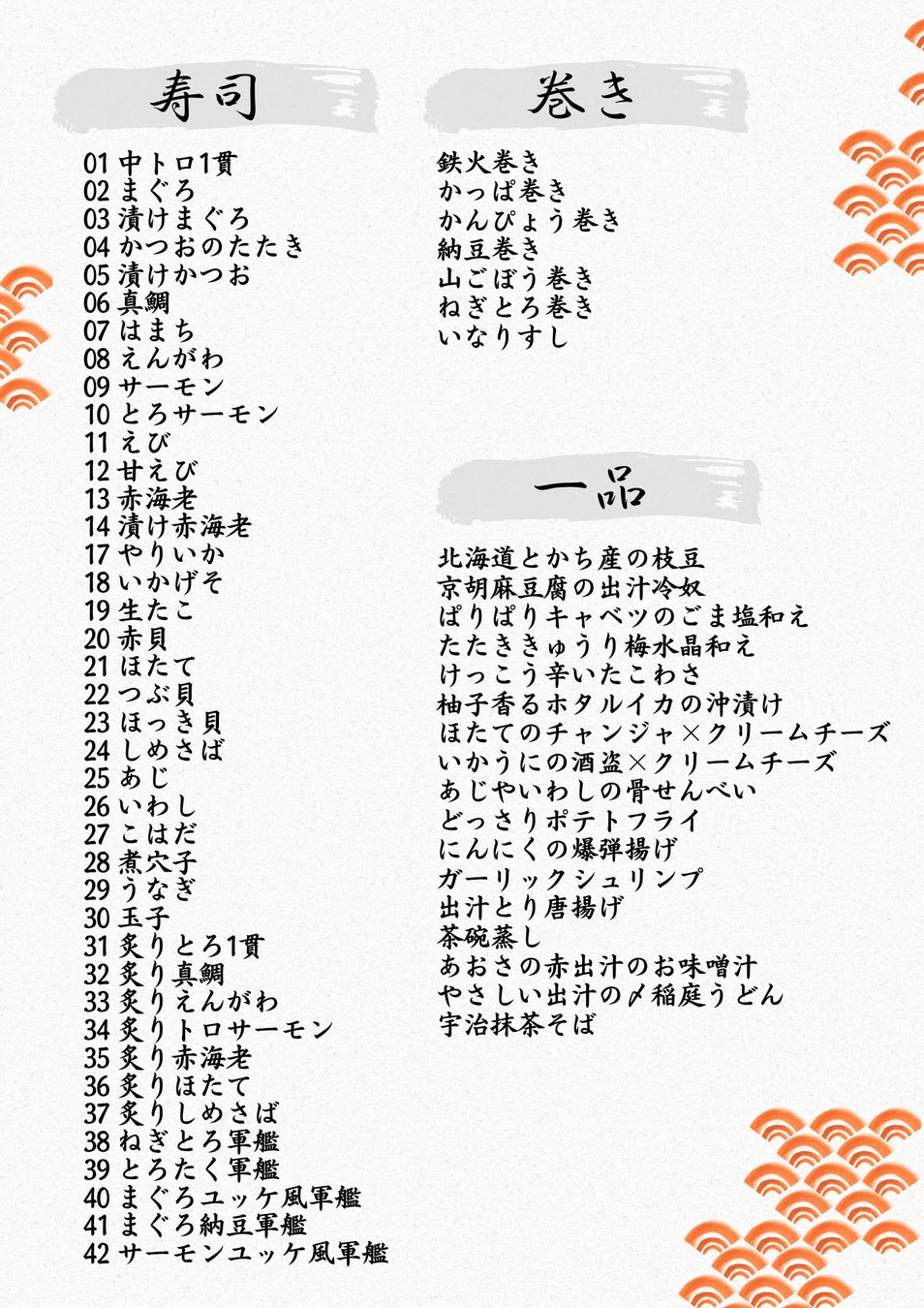 ・寿司食べ放題コースではお通し代は頂戴しておりません。