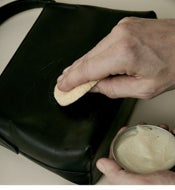 この度のキットは、Cafunéとのコレボレーションにより実現したオリジナルのレザーケアキットです。こちらのレザーケアキットを使って、大切なバッグを長く愛用できます。専用ポーチにてご提供します。