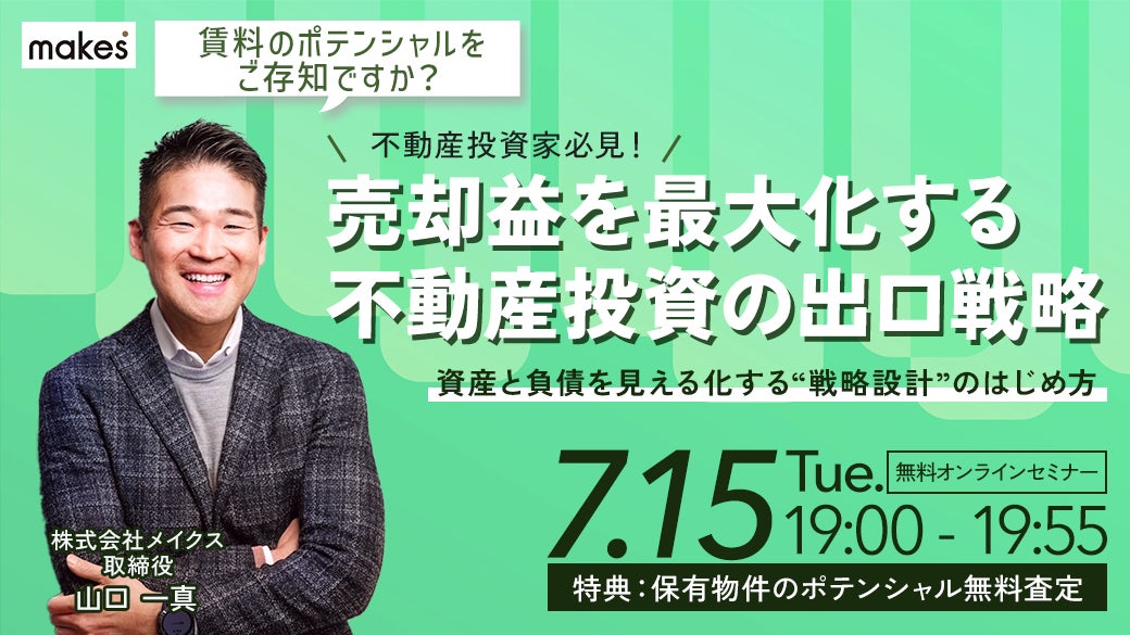 【7/15(火)19:00開催】売却益を最大化する不動産投資の出口戦略/資産と負債を見える化する”戦略設計”のはじめ方セミナー