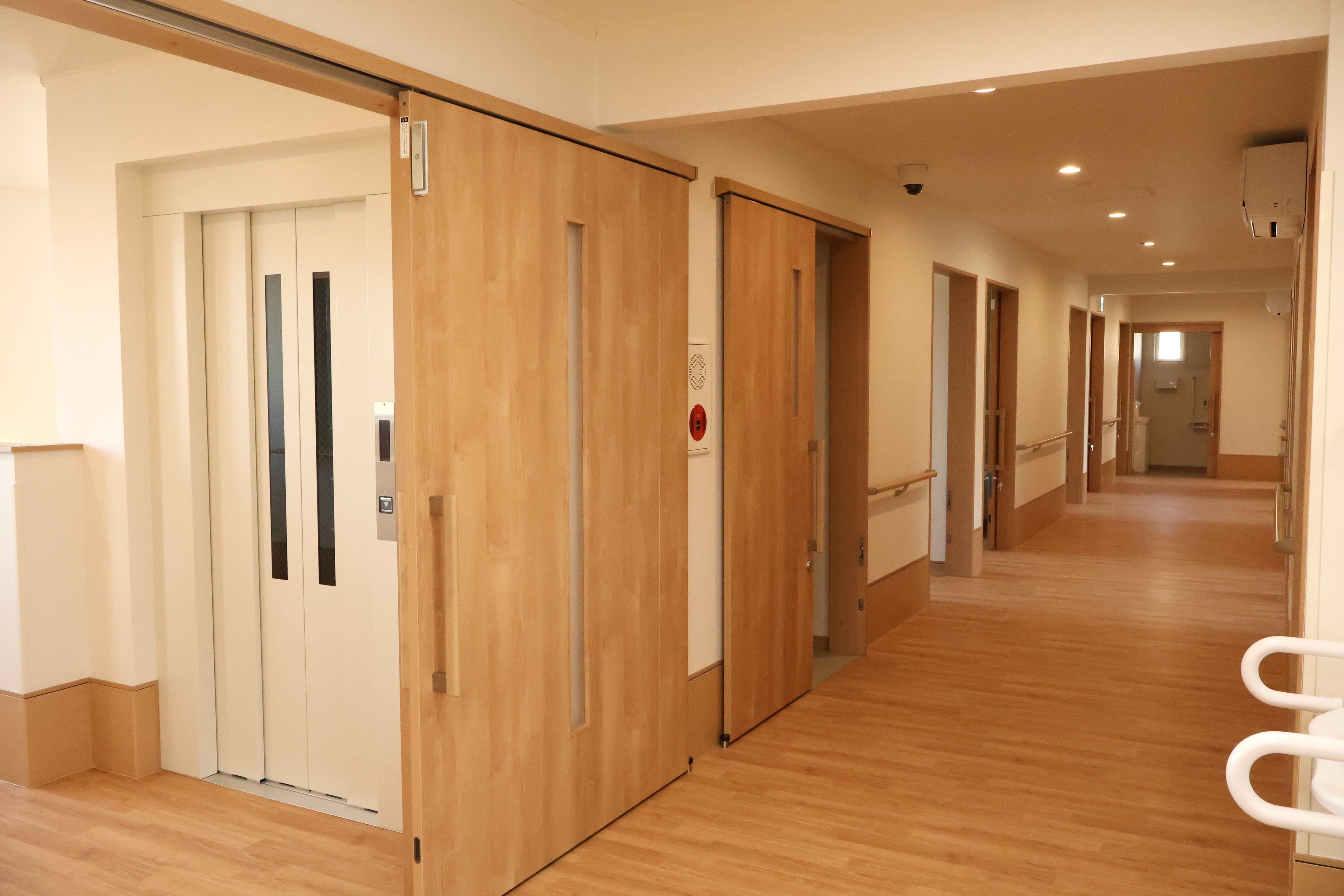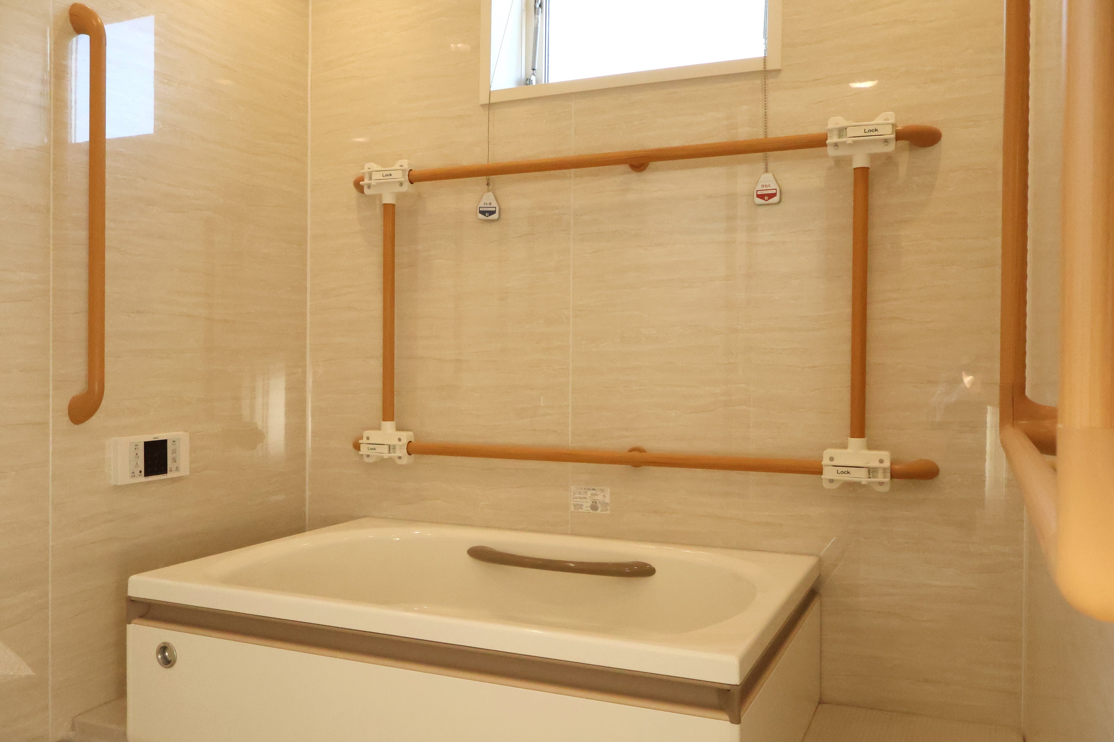 館内は全てバリアフリー対応で足が不自由な方、車いすで移動される方も安心安全でご利用いただけます。浴室にはスライド式の手すりに加え、リフト浴も設置しており、ご利用者様の状態に合わせて安全に入浴いただけます。