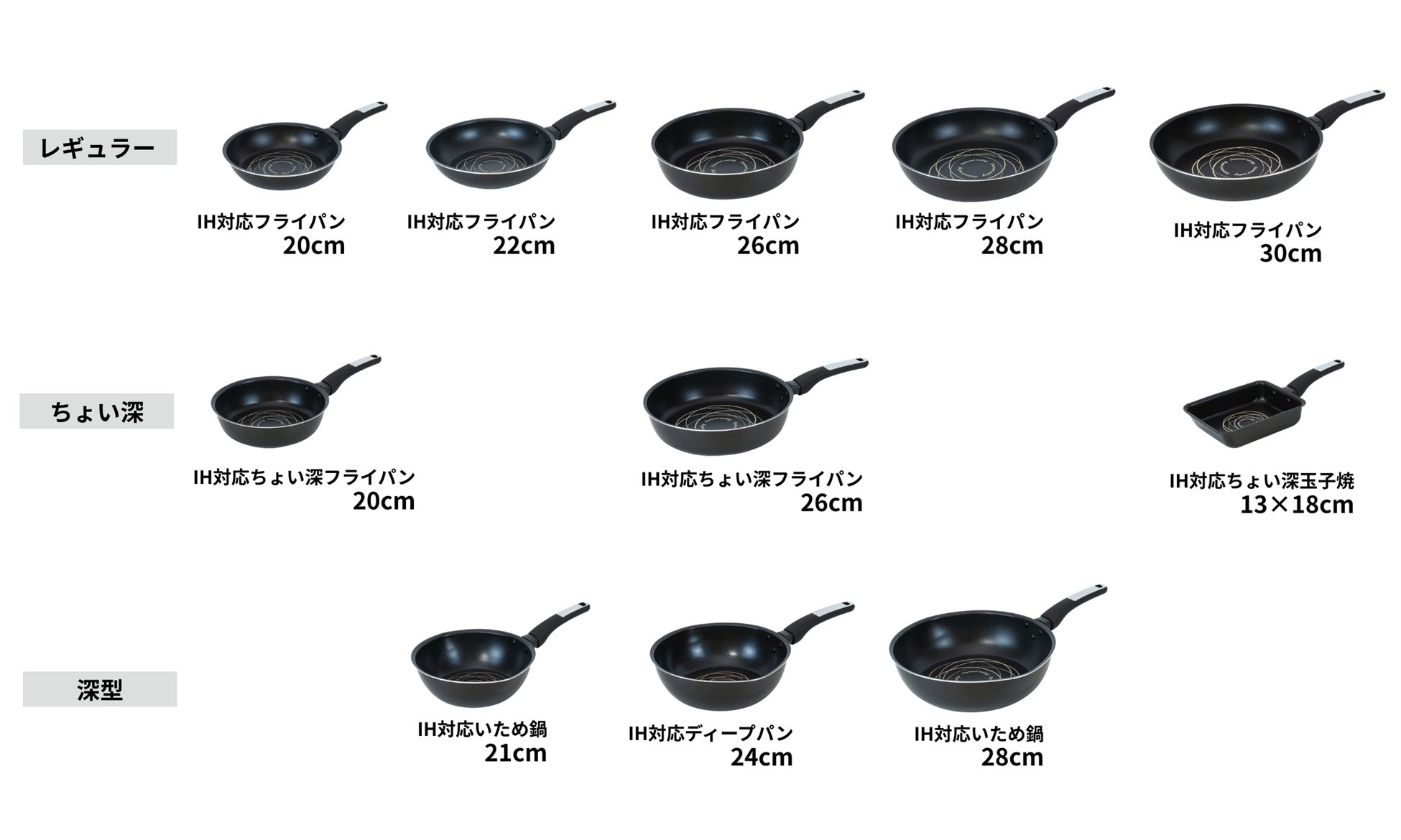 ・20cm、22cm、26cm、玉子焼:総板厚2.5mm