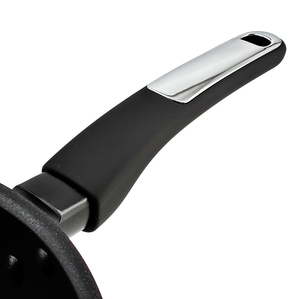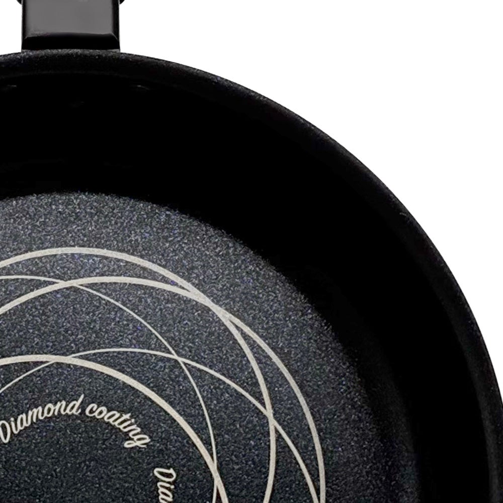 新製品「ディアメイズ」は、スピン加工により本体側面を薄く成形し、軽量化を実現したフライパンシリーズです。独自のフチ出し形状により液ダレしにくく、盛り付けもスムーズ。内面には、こびりつきにくく耐久性に優れた「シルクウェアEKダイヤモンドコート」を採用しています。全11サイズ展開で、毎日の料理から本格調理まで幅広く対応。ハンドルはシリコーン樹脂コーティングにより握りやすく、ガスコンロ・IHクッキングヒーターのどちらにも対応しています。