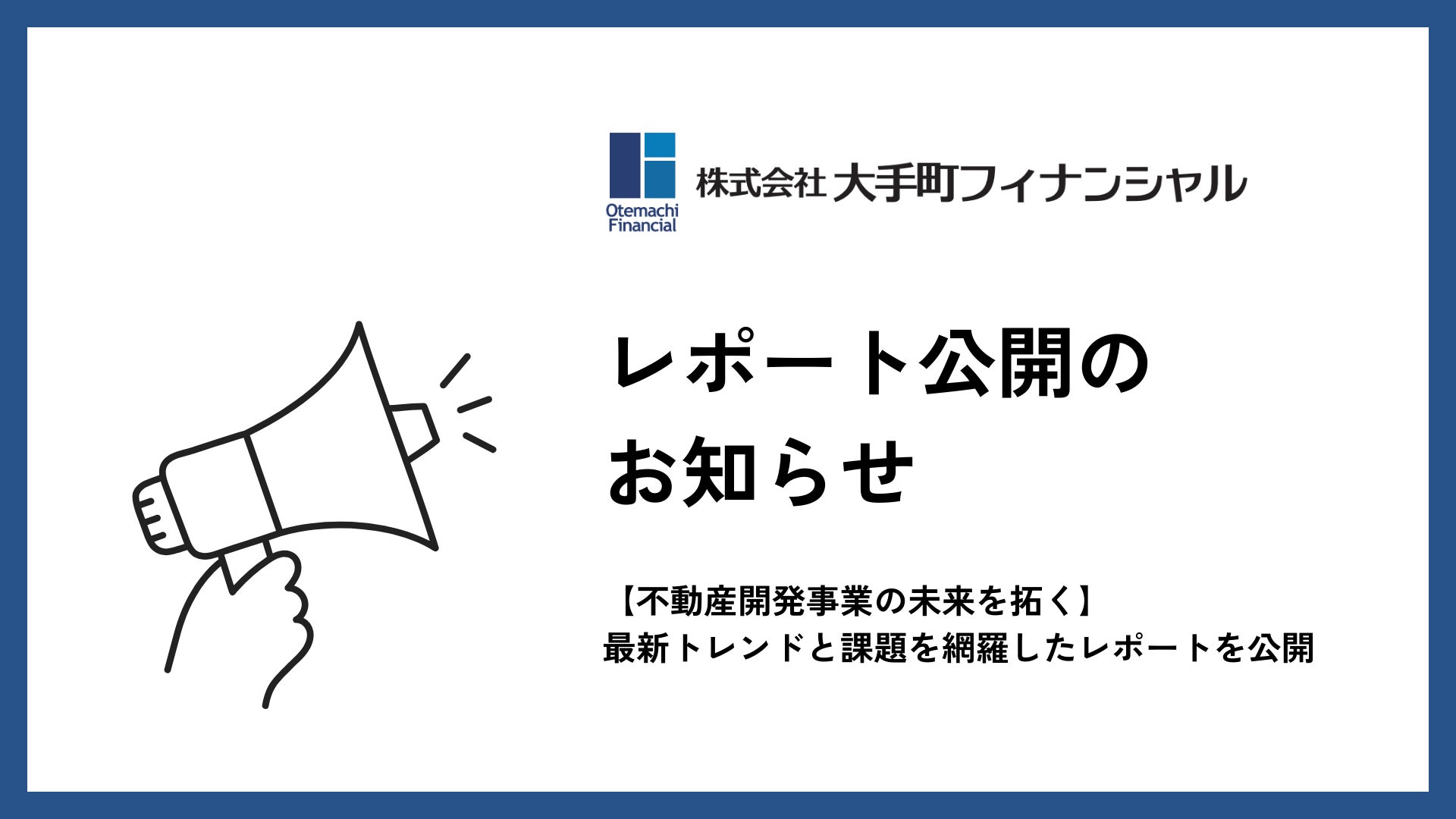 大手町フィナンシャル、【不動産開発事業の未来を拓く】最新トレンドと課題を網羅したレポートを公開