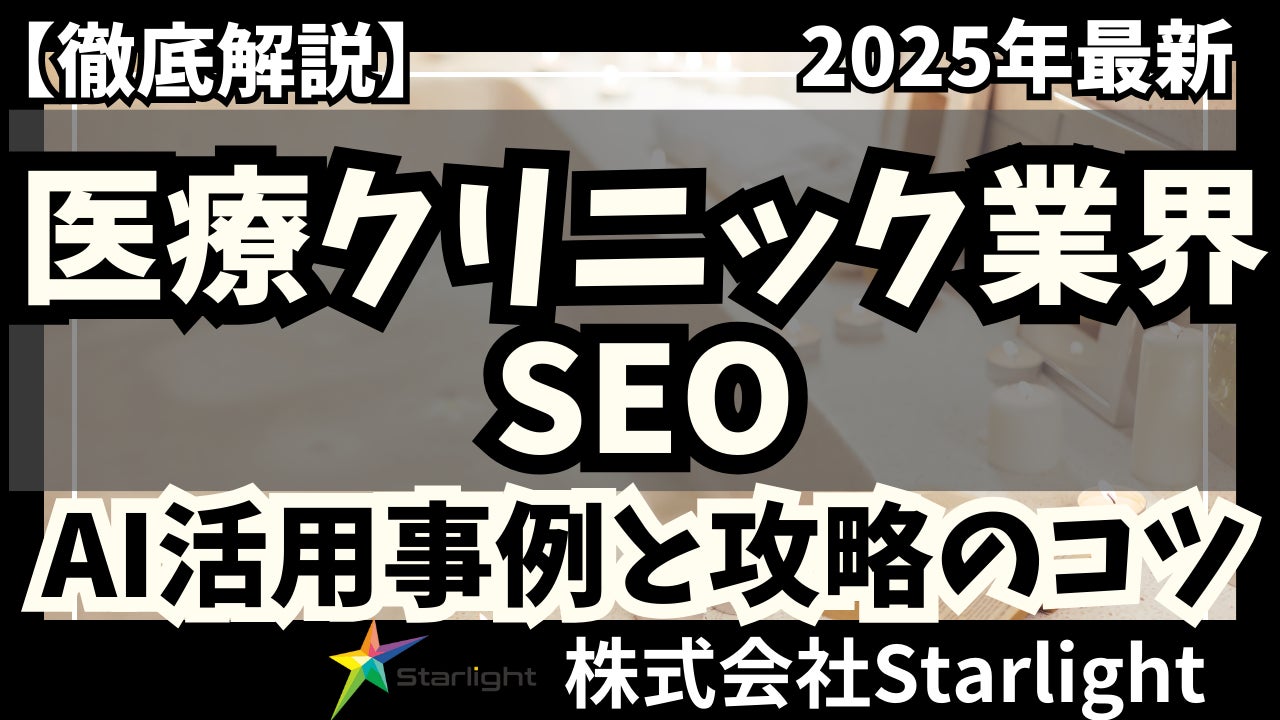 株式会社Starlight(本社:東京都豊島区、代表取締役社長:黒田 真乃介、以下「当社」)は、医療クリニック業界の皆様を対象に「2025年版 医療クリニック業界向けAI×SEOトレンドレポート」を公開いたしました。本レポートは医療クリニック業界がSEOを活用して集客を強化するための最新事例や成功パターン、そして成果に直結する戦略的なAI×SEOノウハウを一冊に集約しています。