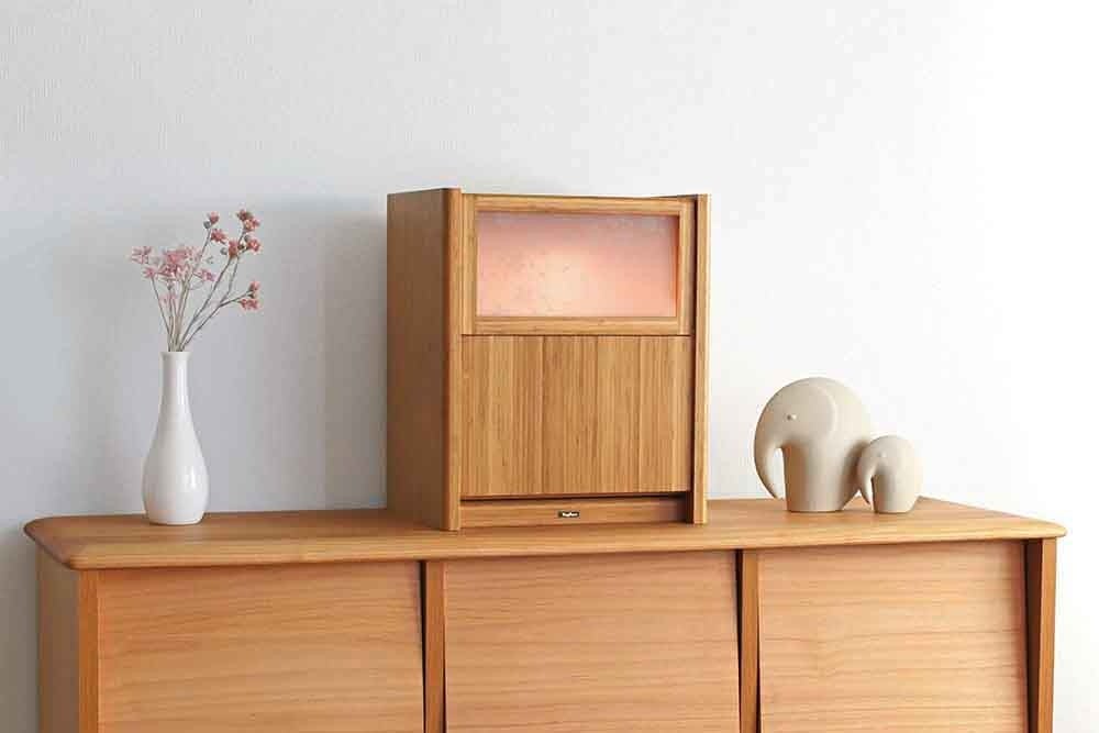 薄型仏壇の「ライフ」は、厚みがわずか185mmで貴重な室内スペースを有効に活用できます。またシンプルなデザインなので、リビングや寝室など様々な場所にさりげなく設置していただけます。