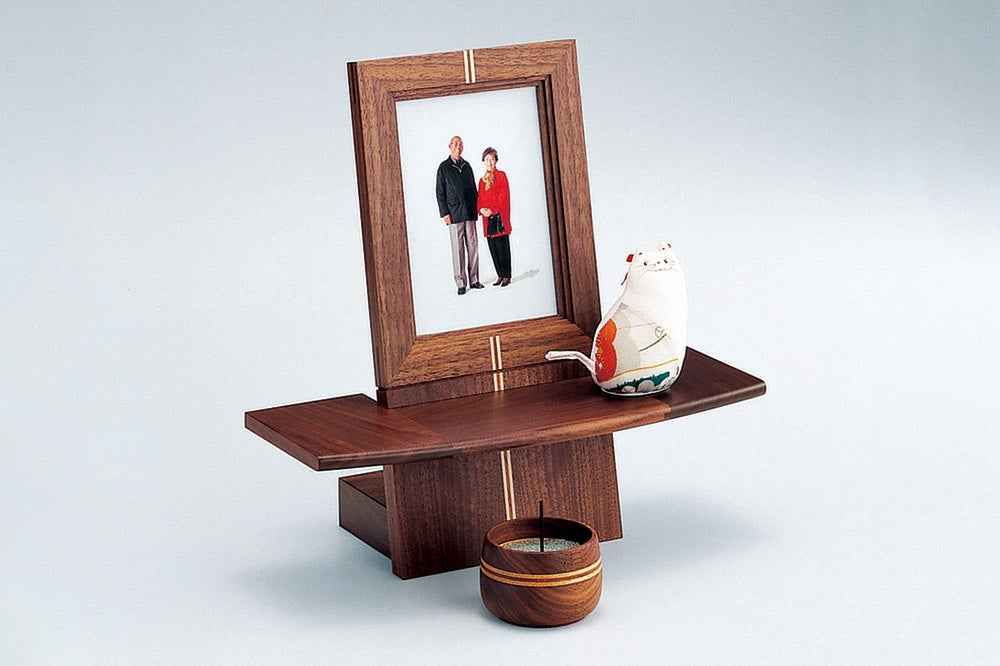 フォトフレームでシンプルにお祀りしていただけるミニ仏壇です。フォトフレームの裏側は木製パーツを使用して固定し、金具を使用しないクラフト感溢れるデザインです。メープルとグラナディーロで象嵌された上下のラインがアクセントに。