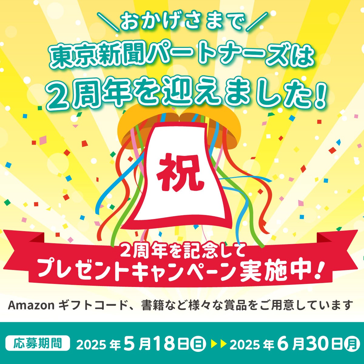 東京新聞では「東京新聞パートナーズ2周年」を記念して、プレゼント懸賞キャンペーンを実施しております!
