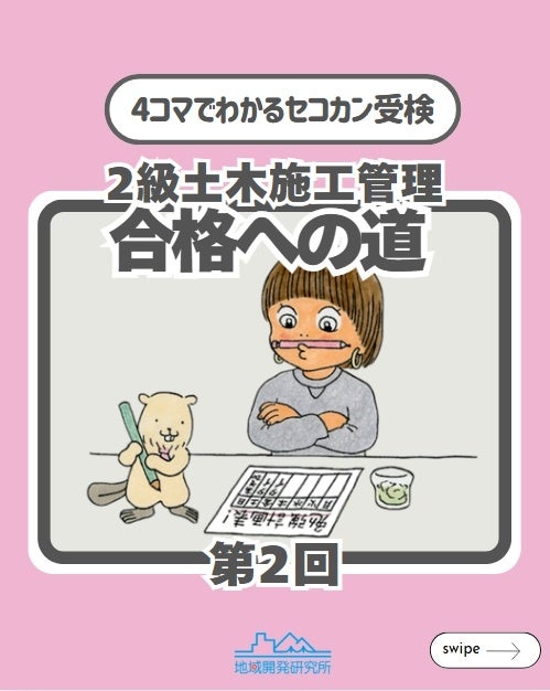 地域開発研究所は、施工管理に関する情報を発信するため、2025年3月にInstagramアカウントを開設。漫画家・松島直子さんとコラボした4コマ漫画で、受検のコツをわかりやすく紹介しています。