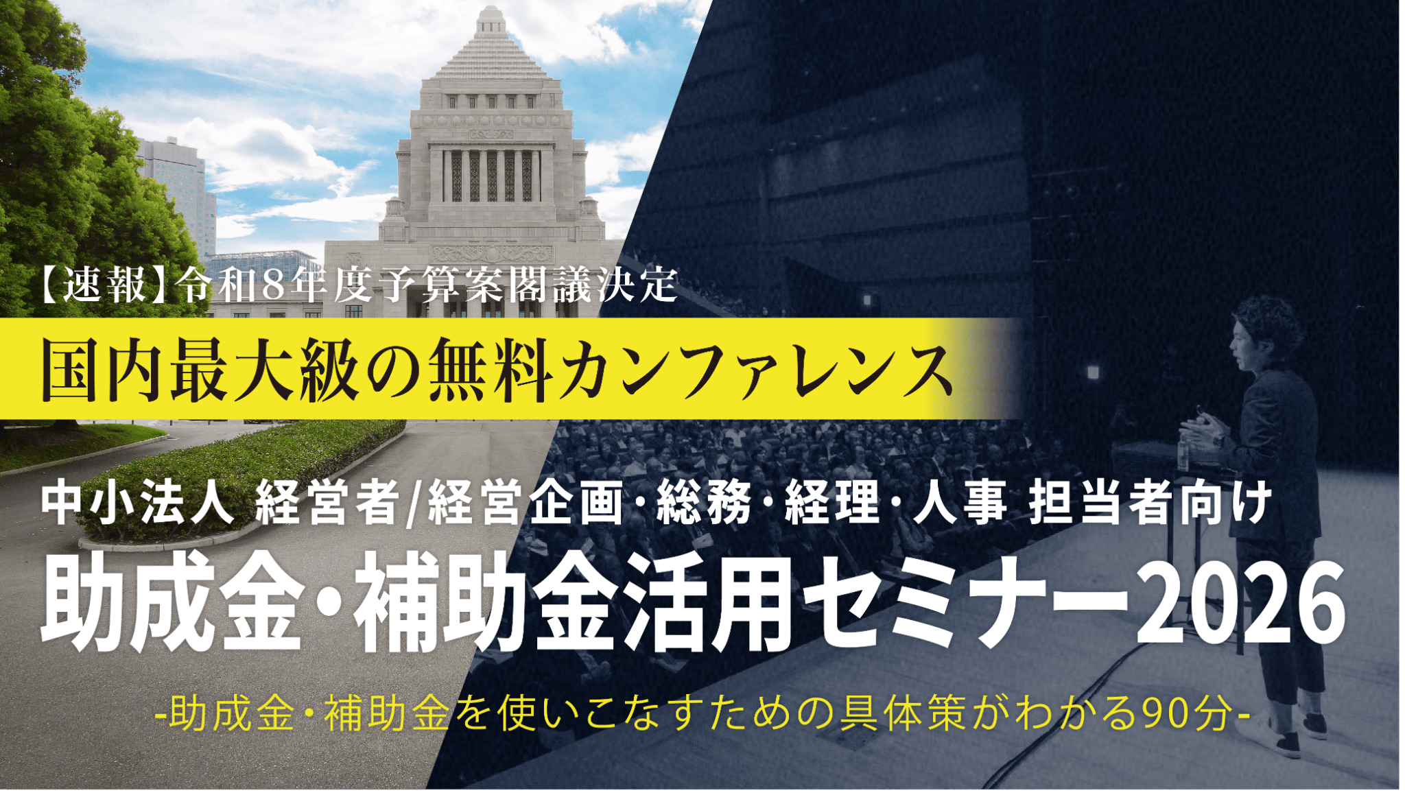 一般社団法人日本中小企業経営者協会(東京都千代田区、代表理事 石黒哲明) は、2026年4月21日(火)15:00~16:30にサンシティレンタル会議室にて、「助成金•補助金活用セミナー2026 in 佐賀」を開催します。本セミナーでは、人件費・原材料費の高騰が続く今こそ中小法人が知っておくべき助成金・補助金について、自社が対象となる制度の見つけ方から、申請を確実に通すための実務ノウハウまでを一挙に解説します。