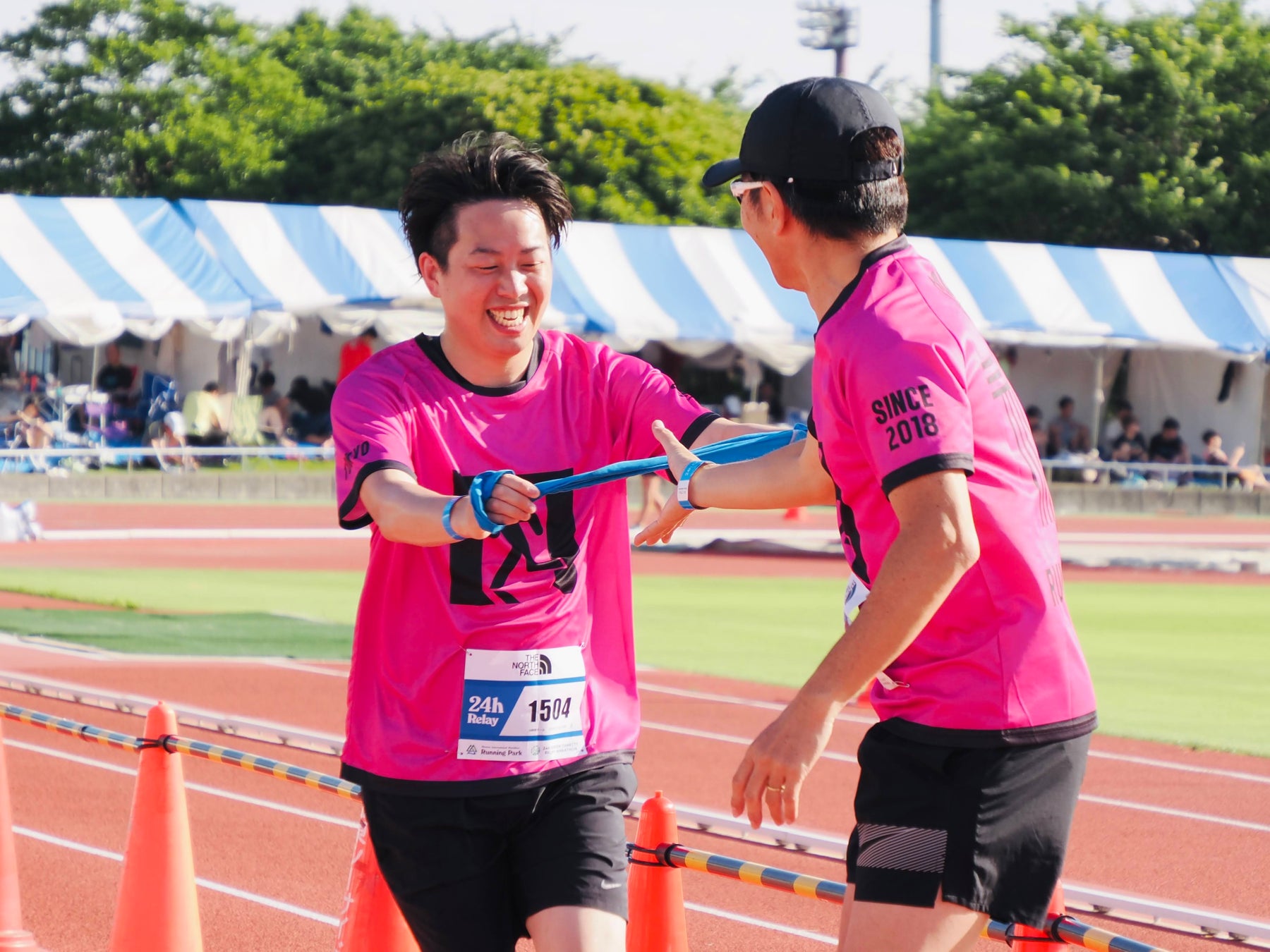 リレーマラソンとは、複数人のチームでタスキをつなぎながら、決められた時間を交代で走るランニングイベント。