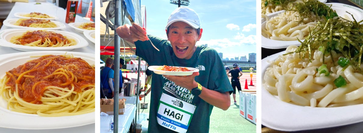 エネルギー補給に最適な作りたてのパスタやうどん、暑い時間帯にぴったりのアイスやフルーツポンチなど、豊富なラインナップが登場。ランナーたちが走りきるための原動力となりました。