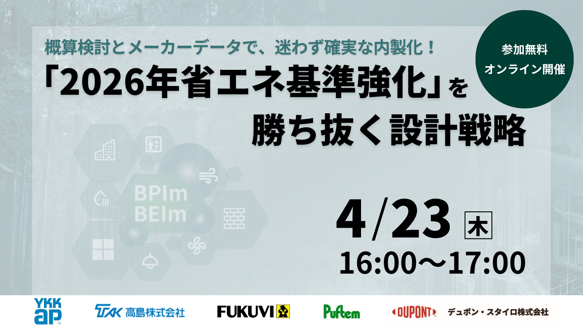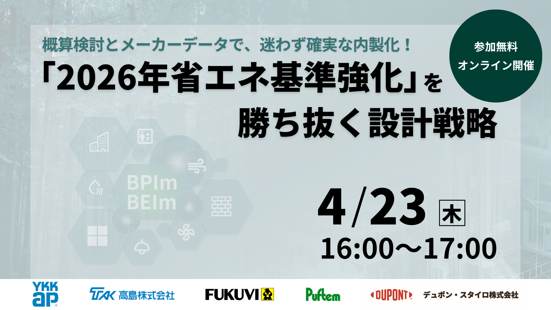 【無料公開ウェビナー】「2026年省エネ基準強化」を勝ち抜く設計戦略