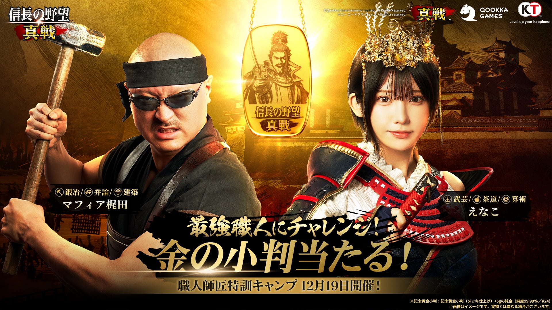 新世代SLG×RPG『信長の野望 真戦』事前ダウンロード開始!マフィア梶田&えなこが「職人師匠」として登場