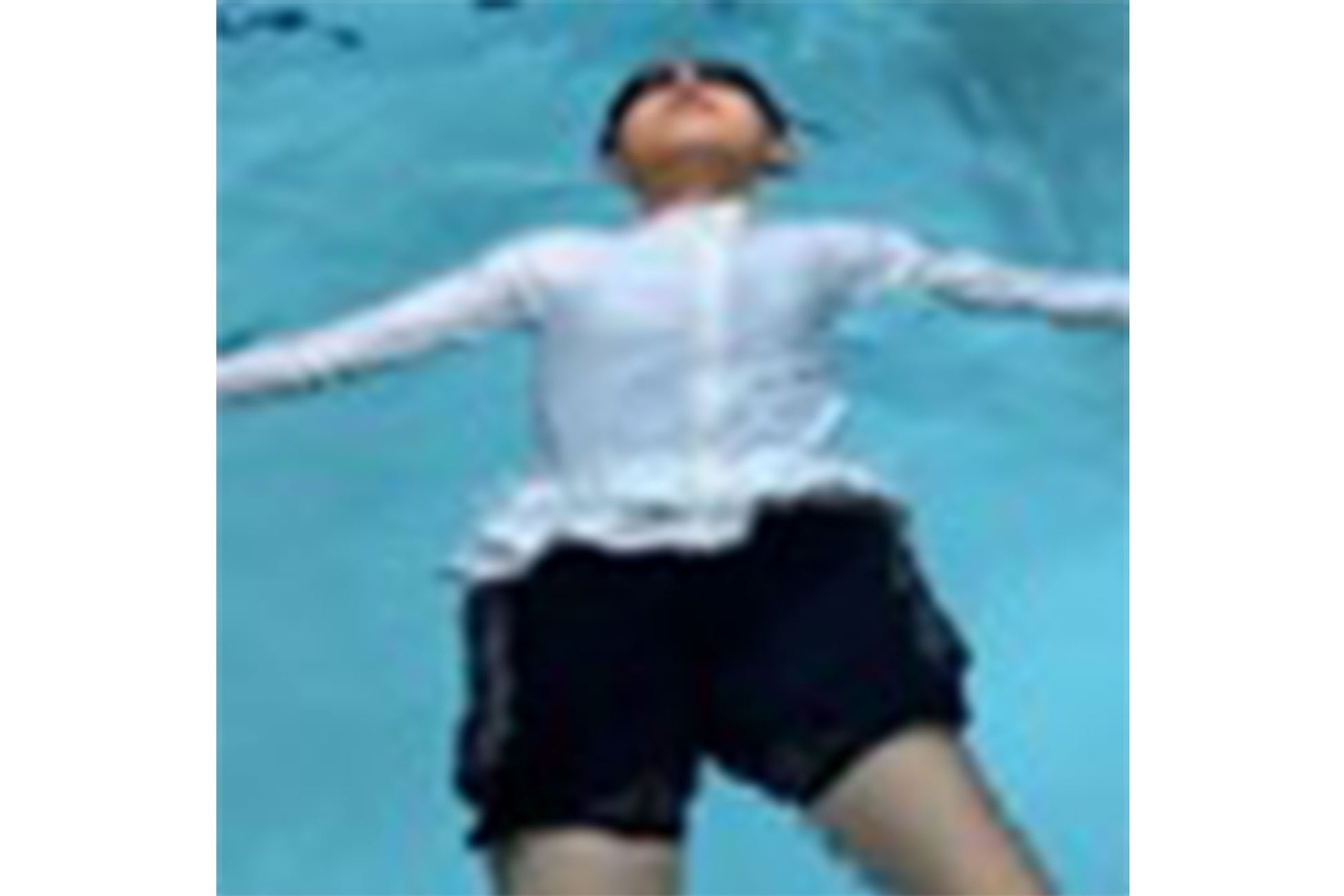 研修会は、若吉教授が開発した「フラットヘルパー」を使用し、「大阪“大の字”泳法」の指導法を実践します。「フラットヘルパー」はネット素材の補助パンツの両側ポケットに、空気の入ったペットボトルを入れて使用することで、沈みがちな下半身浮力を補い、体を浮きやすくします。「フラットヘルパー」を使うことで、指導が難しい“水平に浮く”という感覚を泳ぎの苦手な子どもが容易に身に付けることができ、現場の教員は効率よく指導することができます。