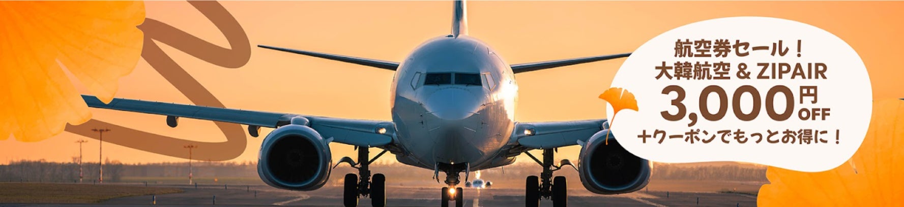 大韓航空のソウル行き便、ZIPAIRの成田—バンコク・シンガポール・マニラ便が3,000円OFF