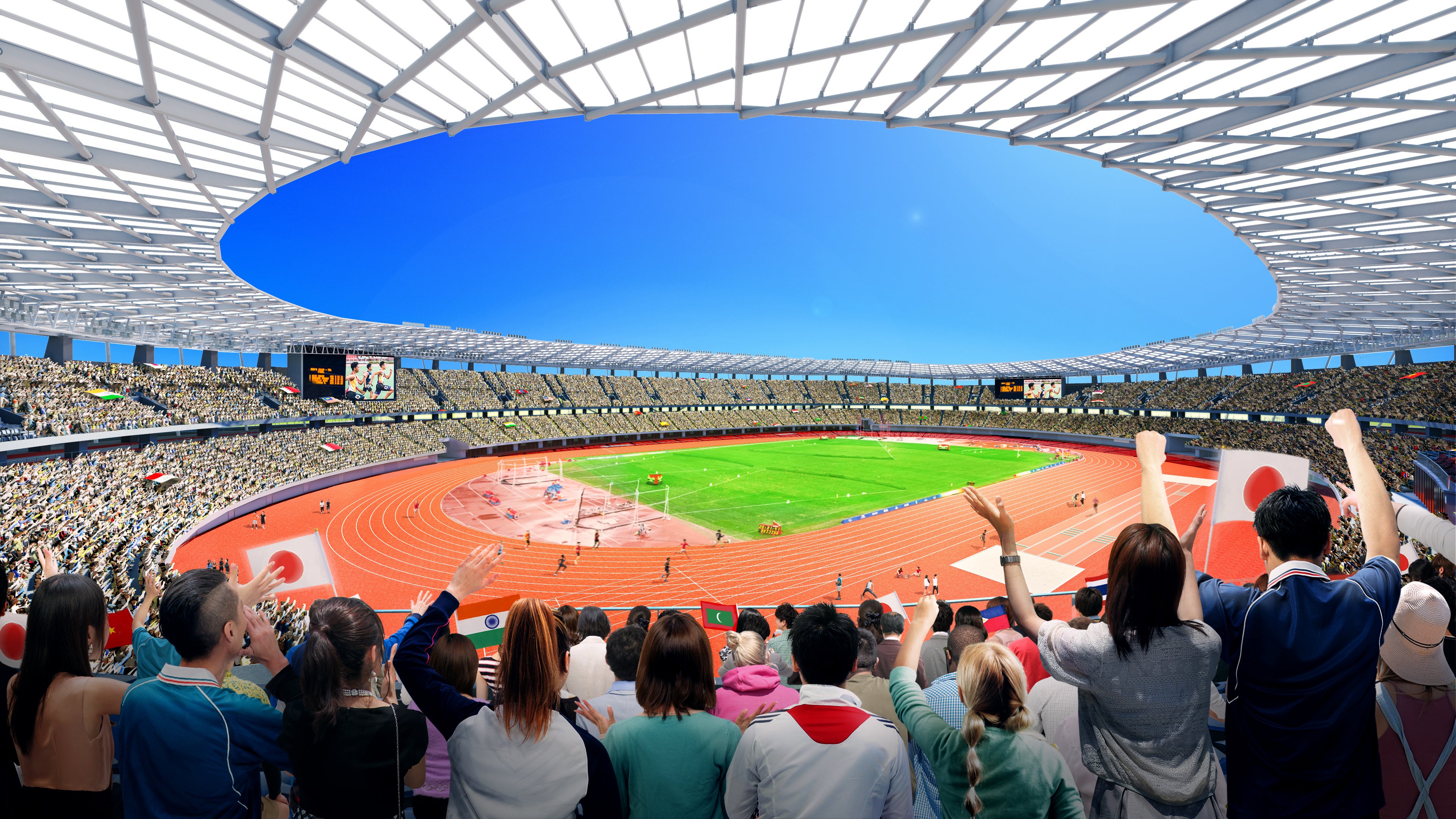陸上競技・サッカー・ラグビー等が実施できる、国際規格の約30,000席を備える屋根付きスタジアムに生まれ変わります。2026年に開催されるアジア・アジアパラ競技大会のメイン会場として使用される予定であり、今後も国際大会の会場として日本のスポーツシーンをけん引する施設でありたいと考えています。