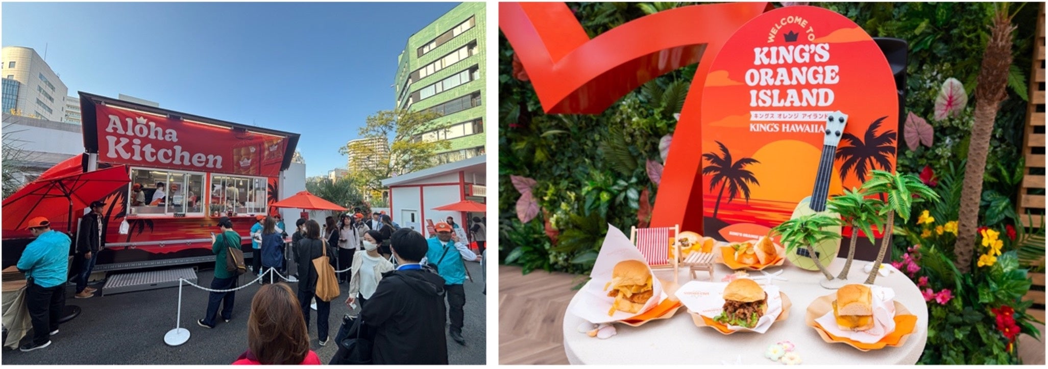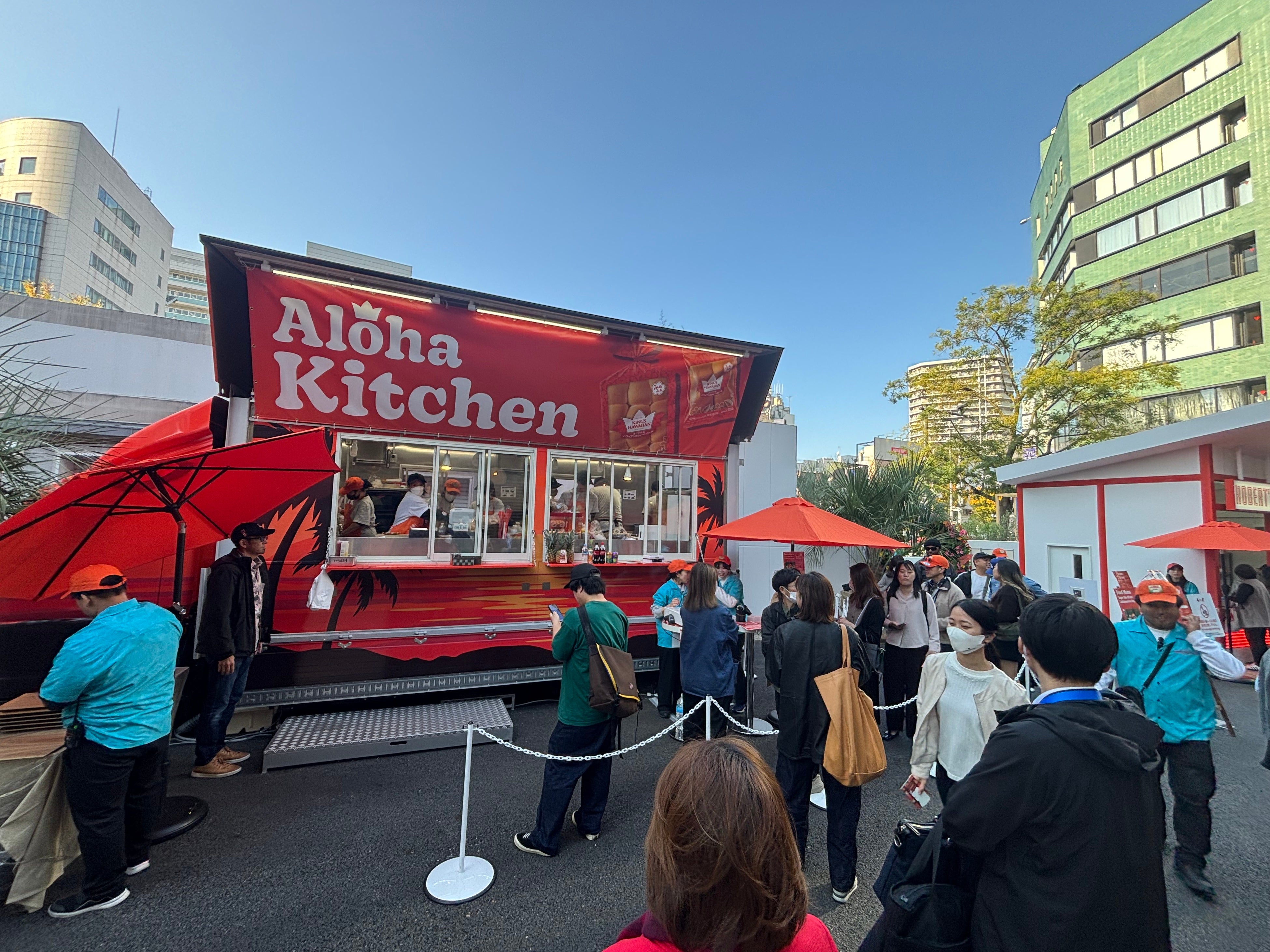 キッチンカー「Aloha Kitchen」では、定番人気の「チーズバーガースライダー」の他、焼肉きんぐ・ハーゲンダッツ・Doleなど、各分野で人気の高いブランドとの特別なメニューを販売。LA発の人気バーガーショップ「Burger She Wrote」とのコラボメニューも販売し、大好評でした。