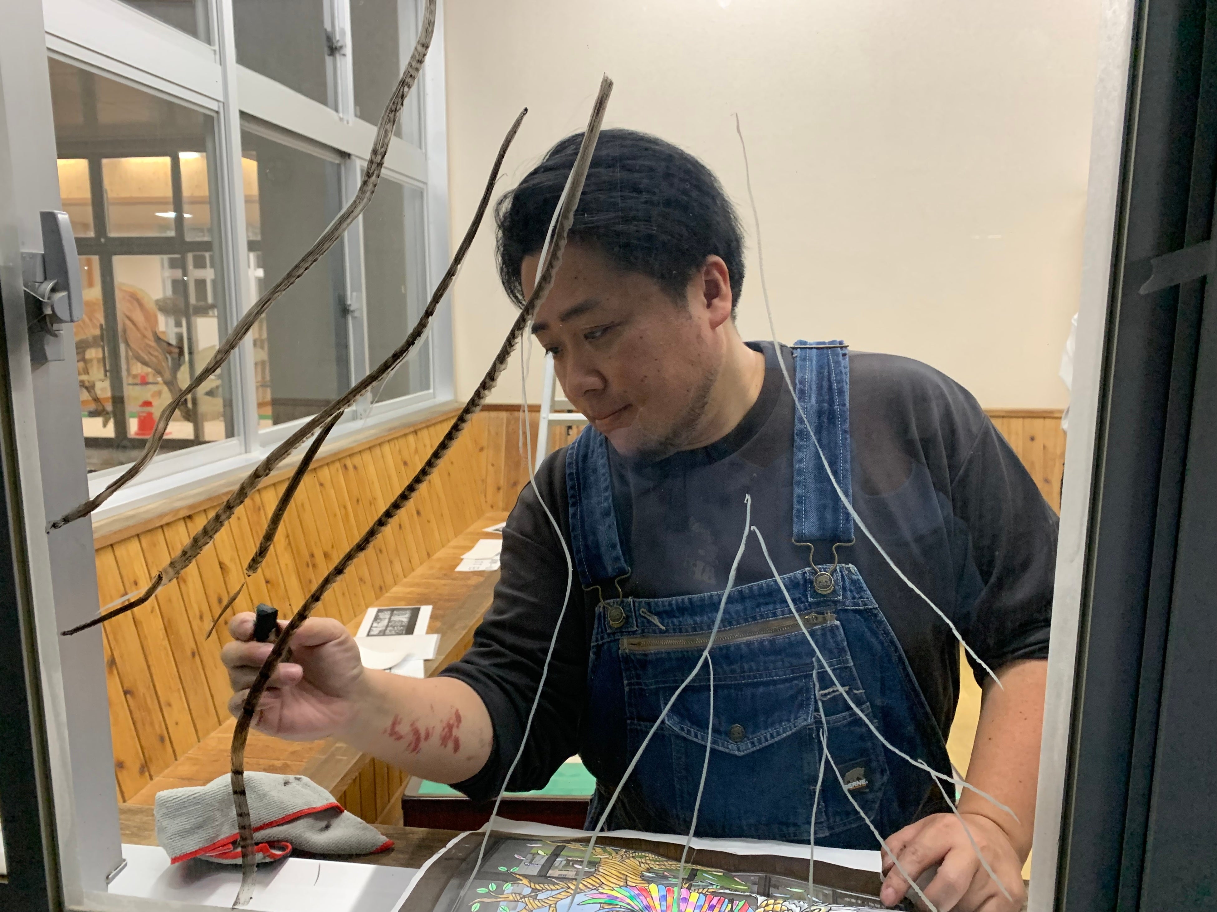 キットパスとの出会いから川崎工場の窓ガラス全面アートや、東京ベイ潮見プリンスホテルのウィンドウアート、店舗のショーウィンドウでのキットパスアートなどを数多く手掛ける。墨絵師としての確かな技術をベースに、躍動感あふれる生き物のダイナミックな表現を追求。ライブドローイングでも多くの人を惹きつける魅力を持つアーティスト。 昨年、鹿児島県へ移住し、現在は離島での活動を精力的に展開。今回の沖永良部島での縁を大切に、今後は徳之島など、さらなる離島の子供たちへ「描く楽しさ」を繋いでいく活動を予定しています。