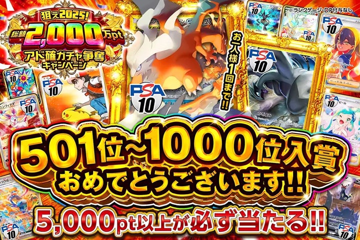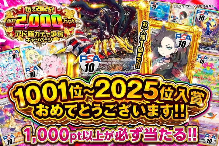 ランキング上位2,025名様をアド確定ガチャにご招待!さらに上位10名様にはPSAカードをプレゼント