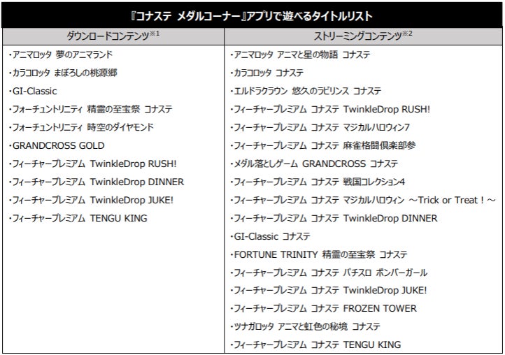 ぜひこの機会に『コナステ メダルコーナー』をダウンロードして、KONAMIのメダルゲームをお持ちのスマートフォンでお楽しみください。