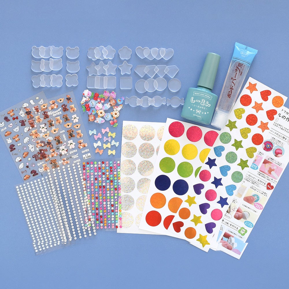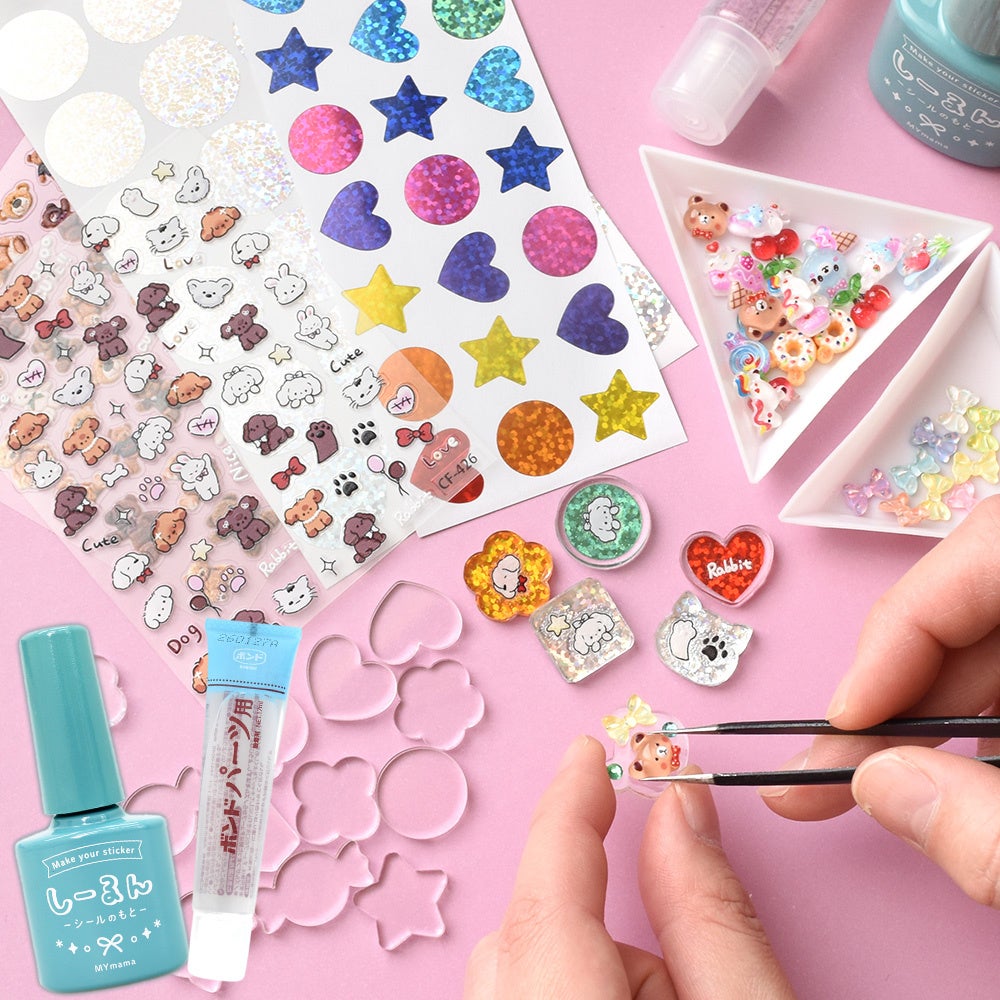 このプレートに対し、市販のシールやデコパーツ、ラインストーン等飾り付けを行うことでオリジナルのシールへと進化させられるという"体験型"の商品です。