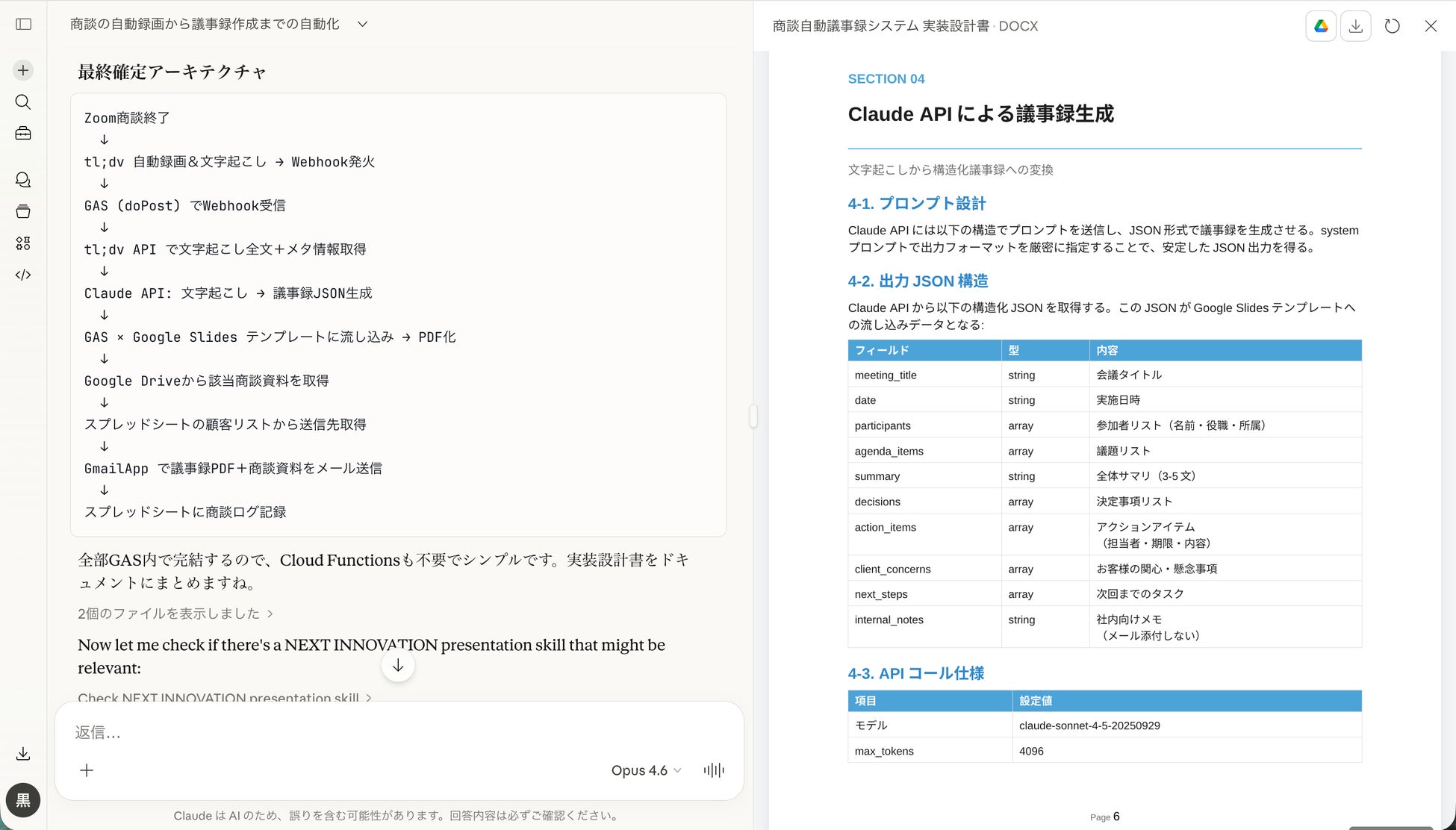 2. 文字起こしデータをAIが解析し、議事録を自動生成(Claude API)