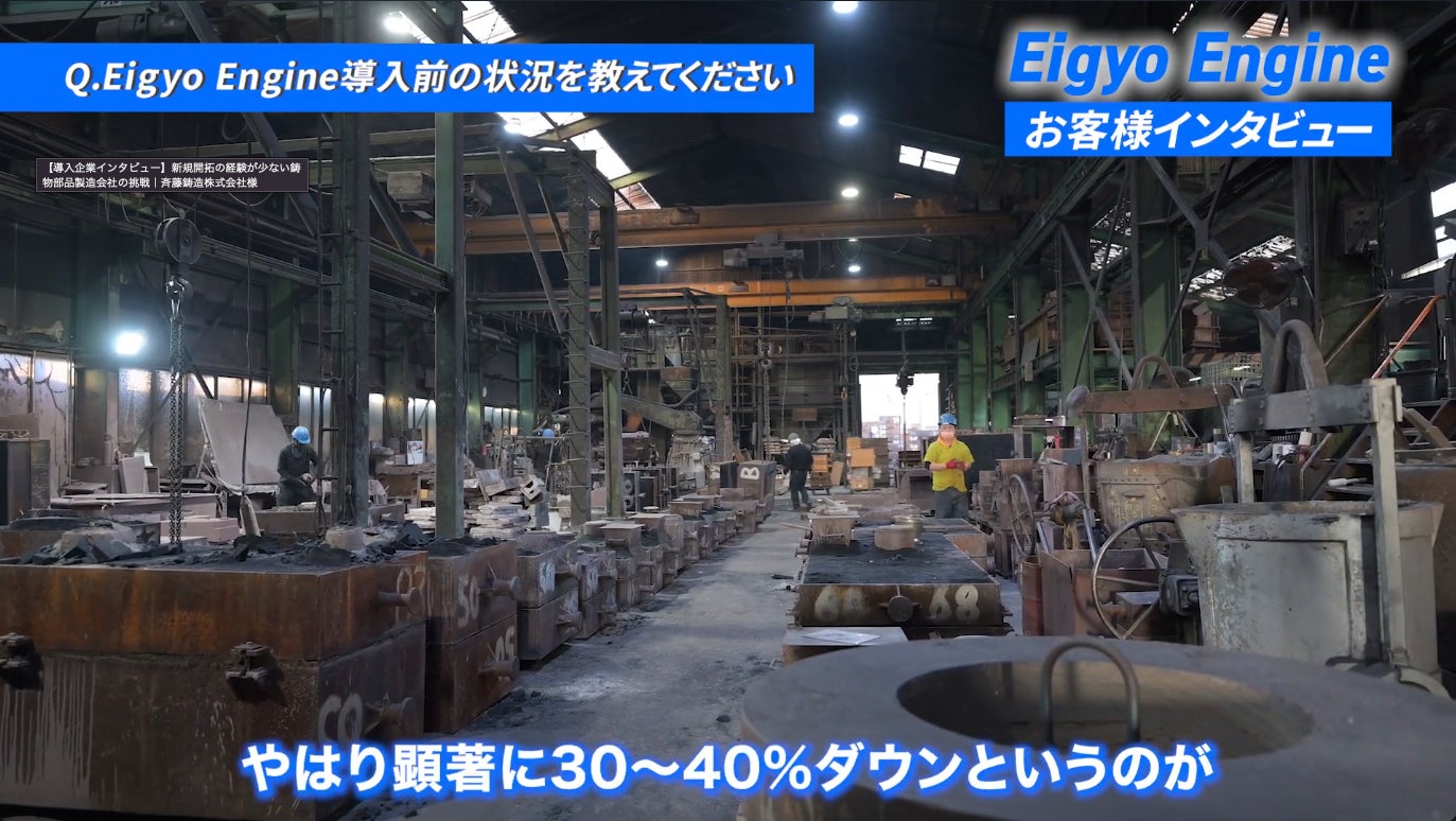 最先端のテクノロジーを活用し、製造業の業務改善を支援する営業製作所株式会社(本社:大阪府大阪市、代表取締役社長:西島本 周)は、同社が提供する営業代行/営業支援/マッチングサービス「Eigyo Engine」が、鋳物部品の製造を行う斉藤鋳造株式会社(所在地:愛知県蒲郡市)に導入されたことをお知らせします。