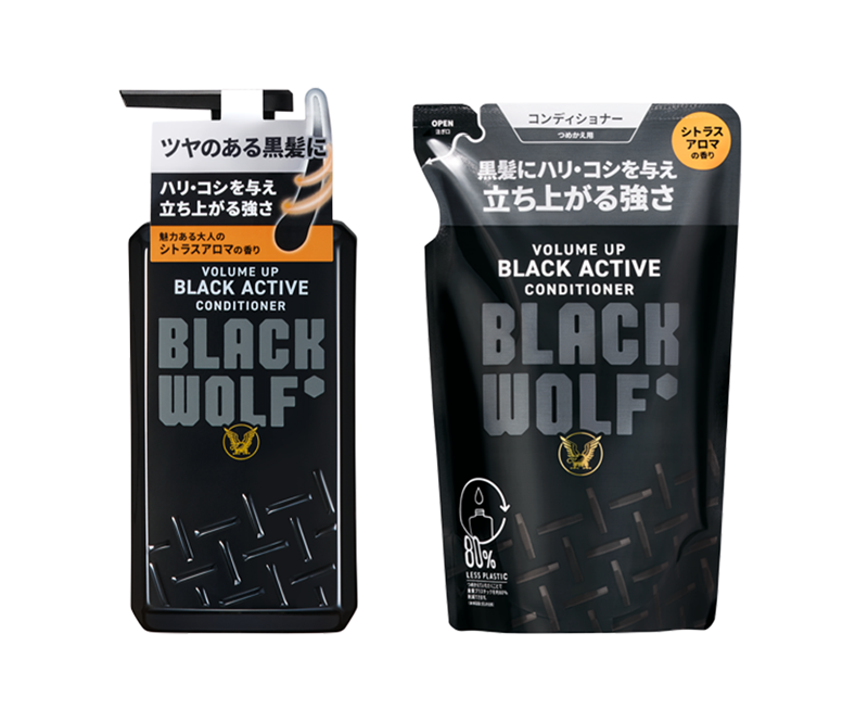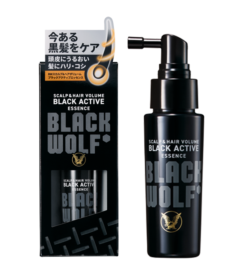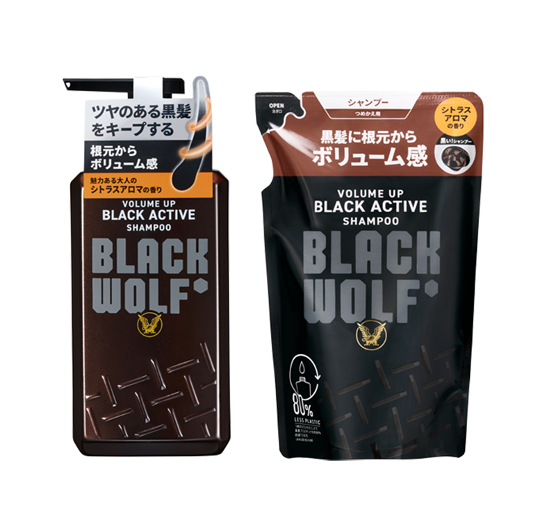 BLACK WOLFシリーズは、ツヤのある黒髪と健康な頭皮のため、株式会社ネイチャーラボとの共同開発により誕生しました。シリーズ共通で当社の独自処方である「ブラックアクティブ処方※」を採用。厳選した11種類の保湿成分が、乾燥しがちな頭皮環境を整え、毛髪にツヤを与えます。「洗う(シャンプー)」「整える(コンディショナー)」「仕上げる(エッセンス)」の3ステップで、頭皮と髪をトータルにケアします。