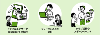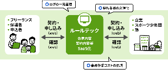 利害関係者の間に存在する、あらゆる約束事について、ルールテックを利用することで、業務提供者と従事者、申込者などがお互いに、簡易に安心して業務を行うことができるルールづくりを実現することが可能になります。