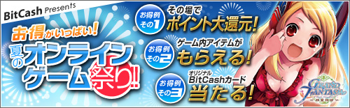 キャンペーン期間中に『夏のオンラインゲーム祭り!!』参加タイトルにて、BitCashを利用すると、