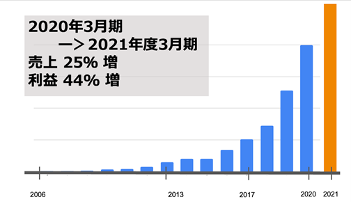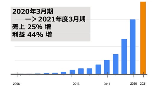 2021年は、新型コロナウイルス感染症の影響を社会的にも経済的にも大きく受けた1年でした。一方でクリエーションラインの需要はコロナ禍でも伸び続け、2021年3月期は前年度比で売上25%Up、利益44%Upを実現しました。