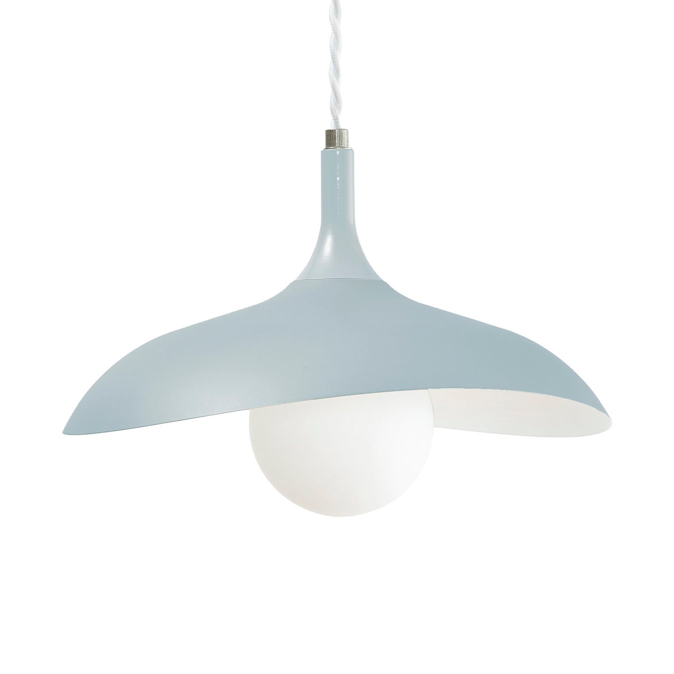 シェードから光源が見えるようなデザインが印象的なペンダントライト。電球はガラスドームで包まれており、ガラスを通したやわらかな光でお部屋を照らします。
