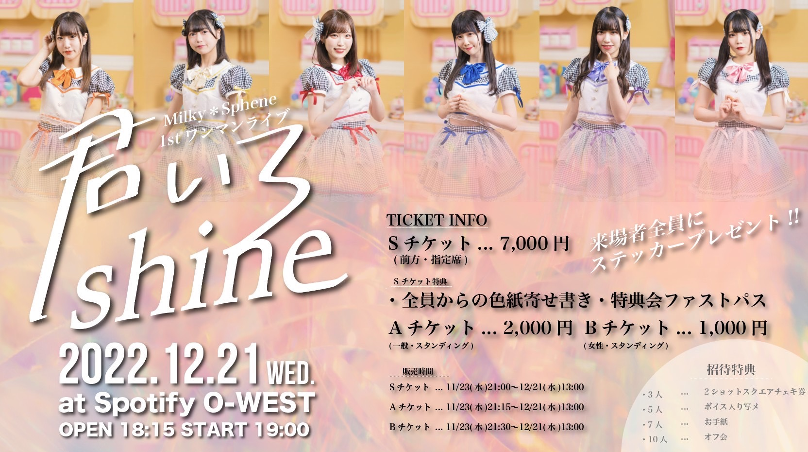 そんな新メンバーが、加入して加速していくMilky✳︎Spheneだが同月の12月21日(水)にSpotify O-WESTにて開催する待望の1stワンマンライブ「君いろshine」を控えている。