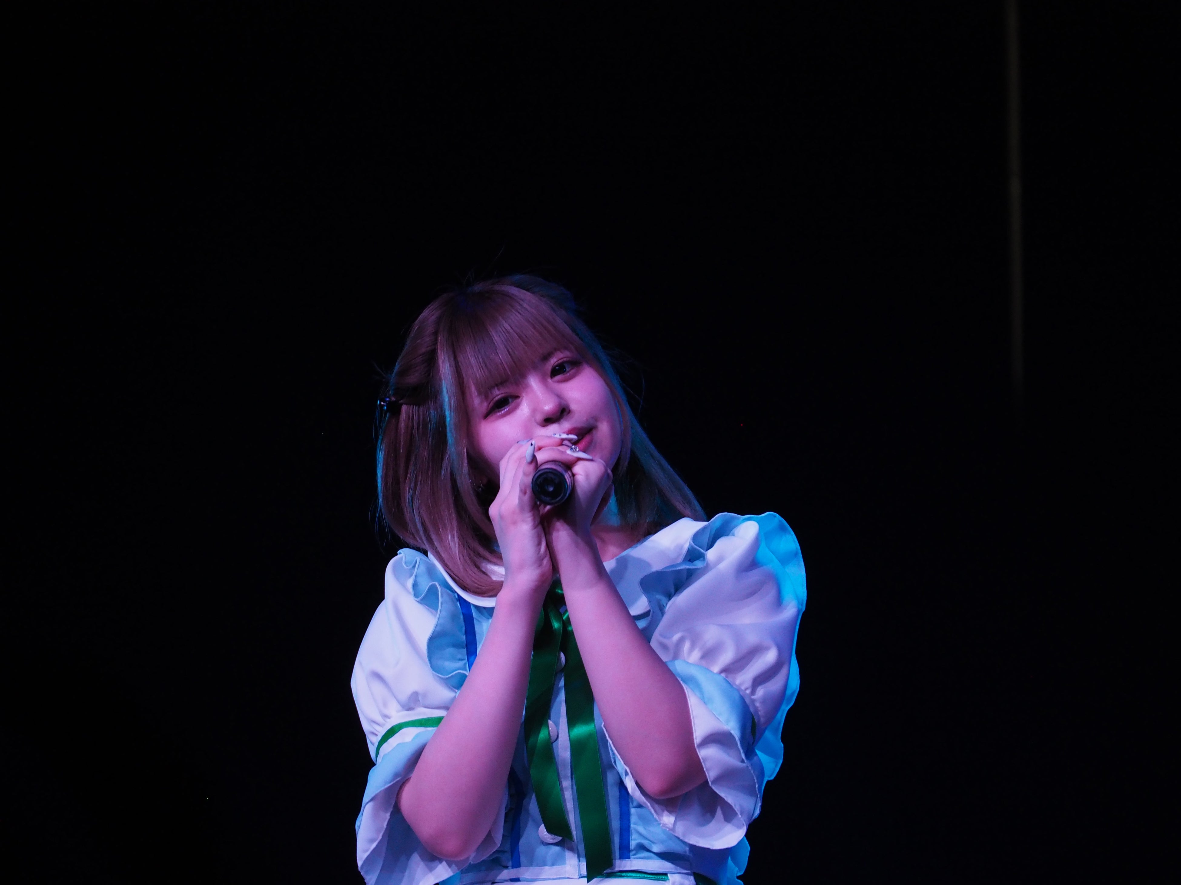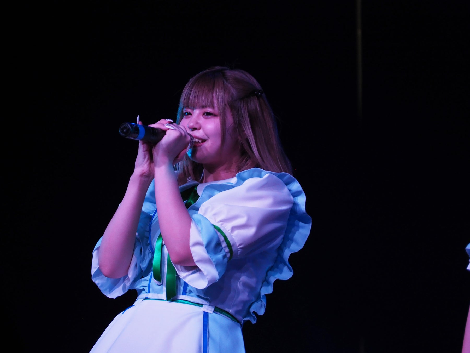 榎宮 梓は、「すごい緊張してちょっとだけ間違えてしまったのですが、メンバーがフォローしてくれたので大丈夫でした。ここから頑張るのでよろしくお願いします。」とステージデビューを終えて笑顔で感想を言った。