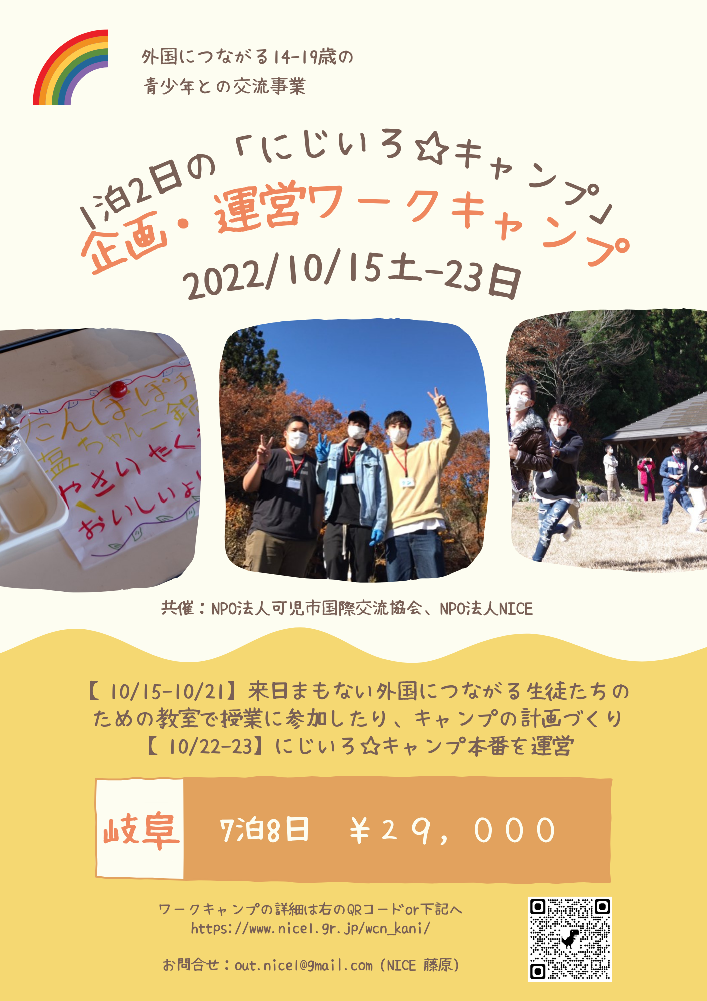 2022年10月15日(土)~23日(日)に岐阜県で開催される「外国につながる子どもたちとのワークキャンプ」の参加者を10月2日(日)まで募集中。詳しくはチラシの内容をご確認ください。