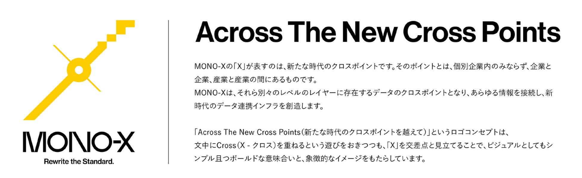 MONO-Xの「X」が表すのは、新たな時代のクロスポイントです。そのポイントとは、個別企業内のみならず、企業と企業、産業と産業の間にあるものです。