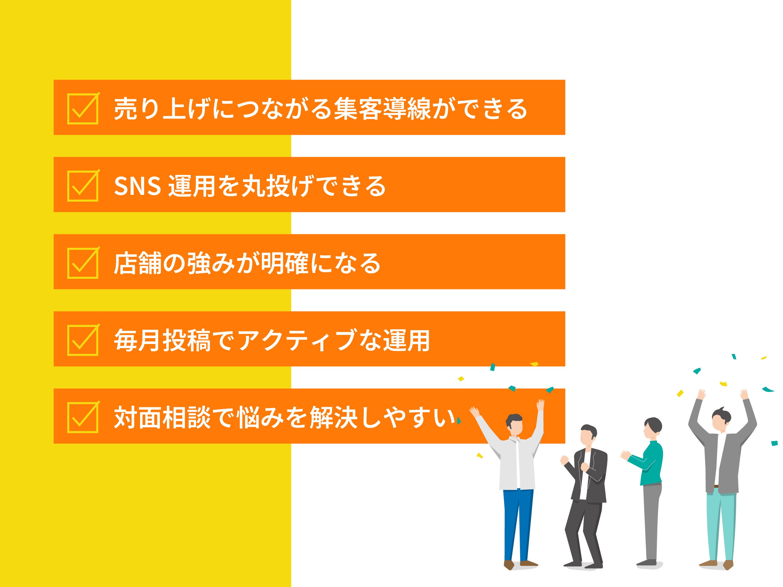 さらにターゲットを設定したSNS広告を配信できるようアドバイスをし、実際の来店につながる集客導線を構築します。