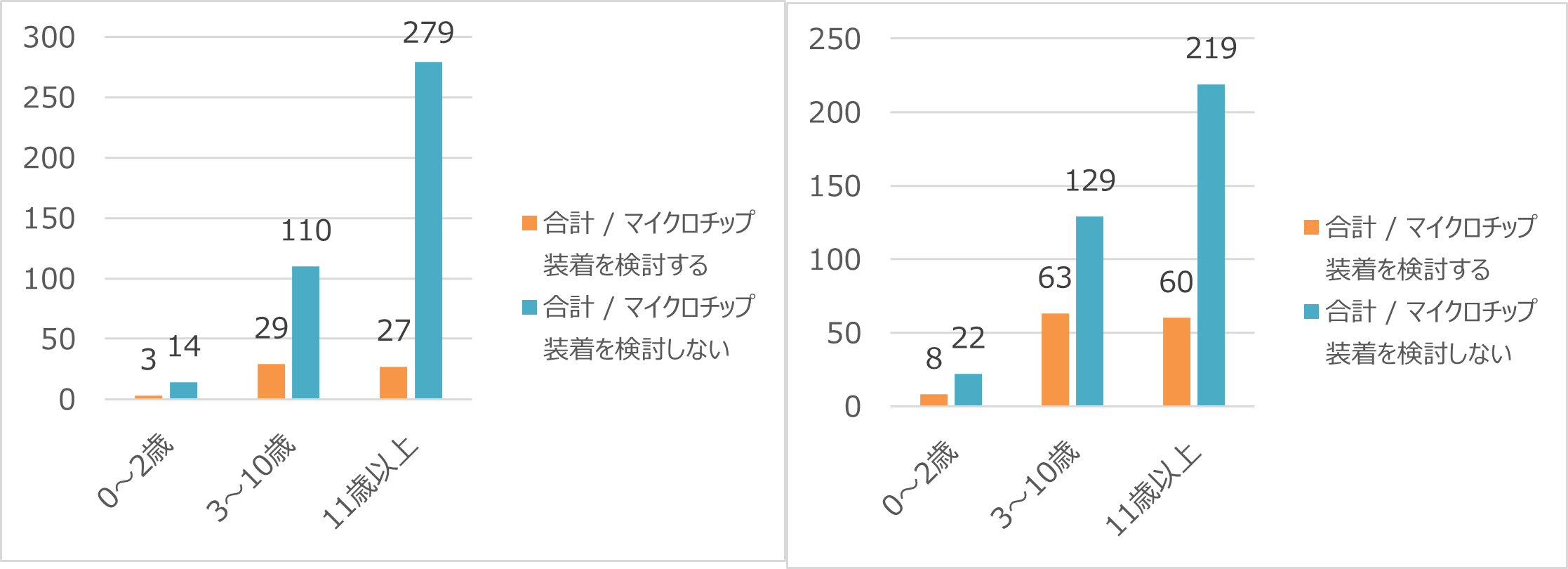 また、猫に比べて犬の飼い主はマイクロチップ装着意識がやや高い傾向。