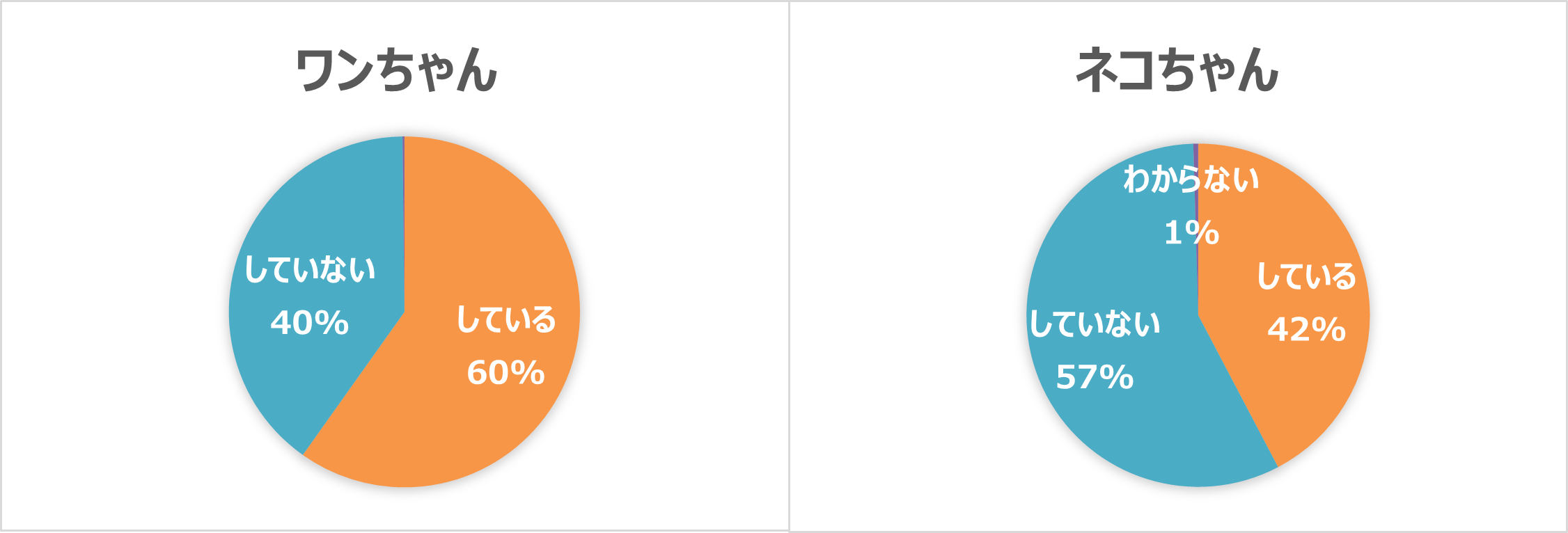 現在、マイクロチップを装着している:【犬】60%、【猫】42%