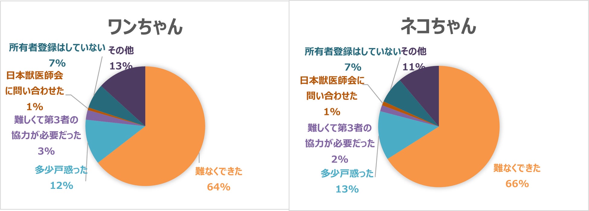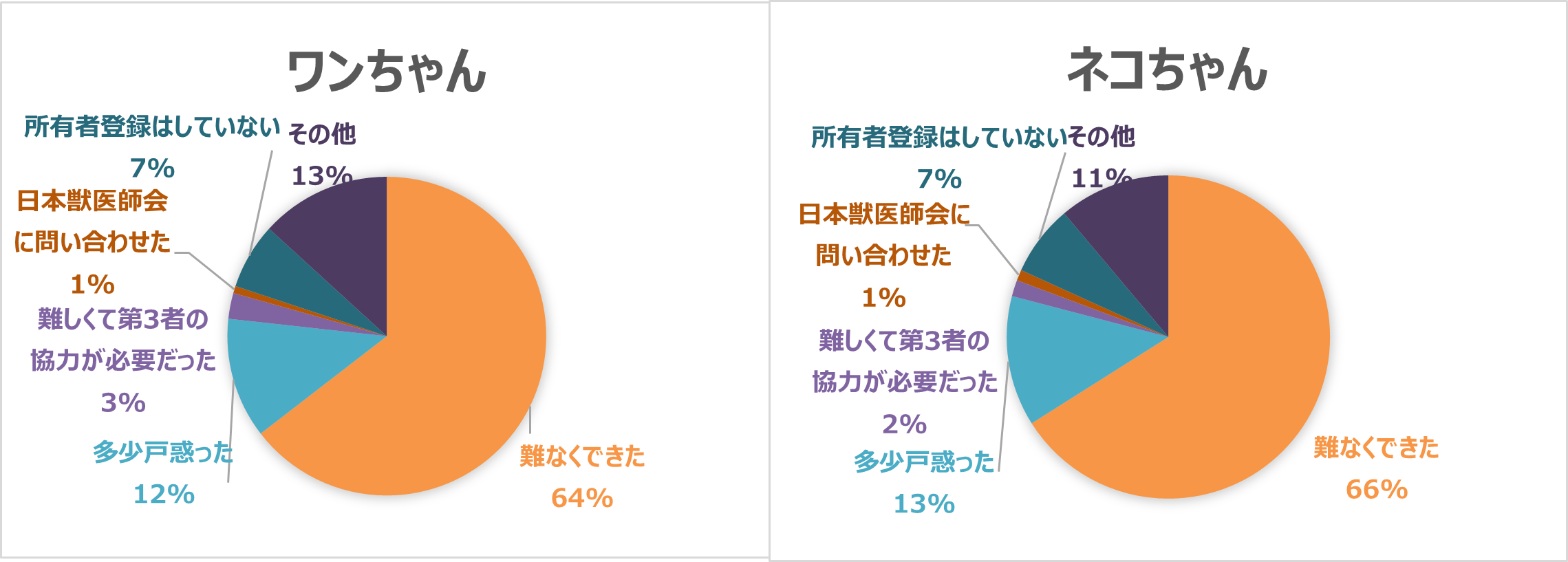 所有者登録の難易度:【犬・猫共通】「難なくできた」が6割強