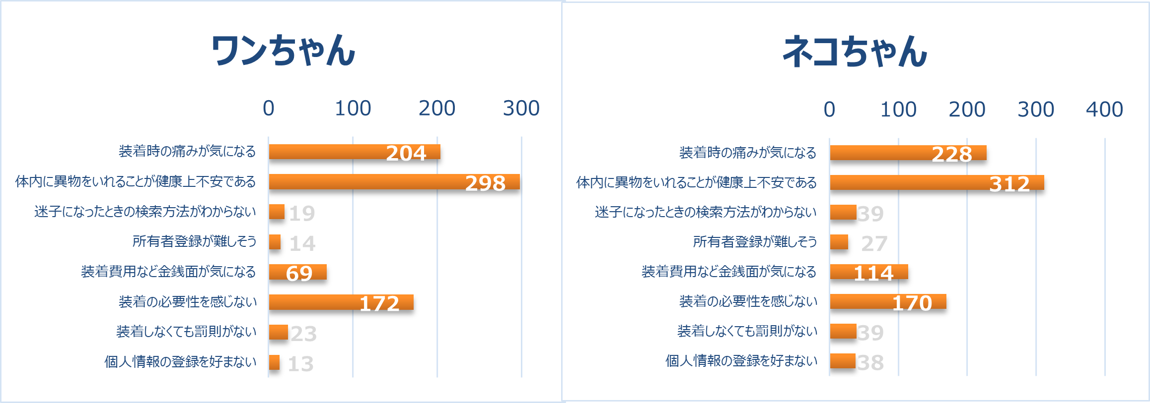 犬・猫の飼い主ともにマイクロチップに対する安全性の懸念があることがうかがえる。