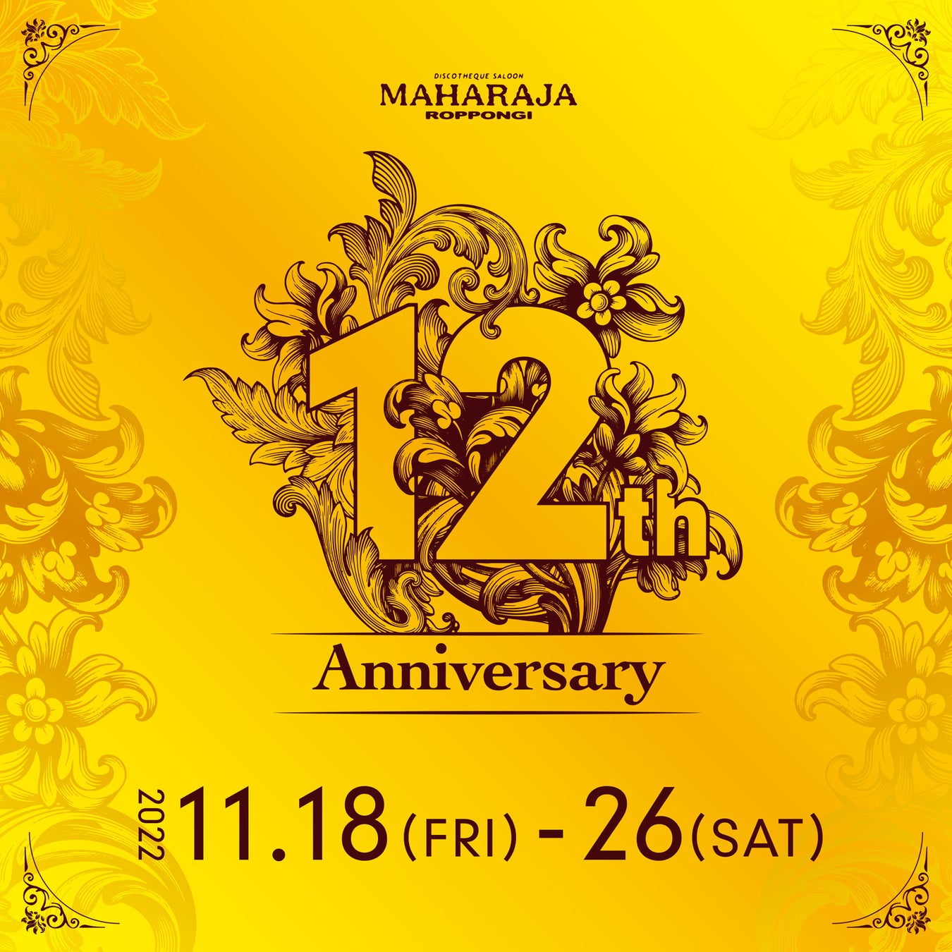 2010年に六本木の地で復活オープンした“マハラジャ六本木”は今年11月に12周年を迎えます。
