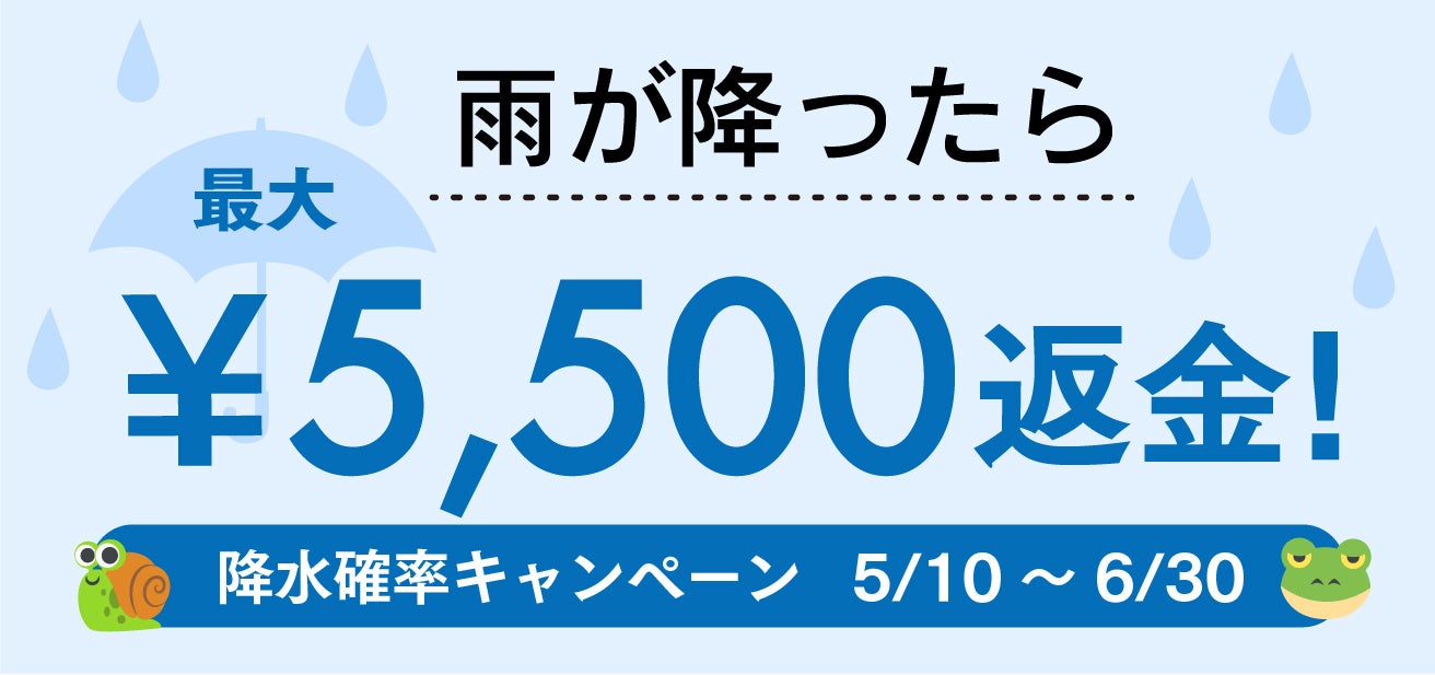 雨が降ったら最大5,500円返金!宿泊費がお得になる降水確率キャンペーンを開催