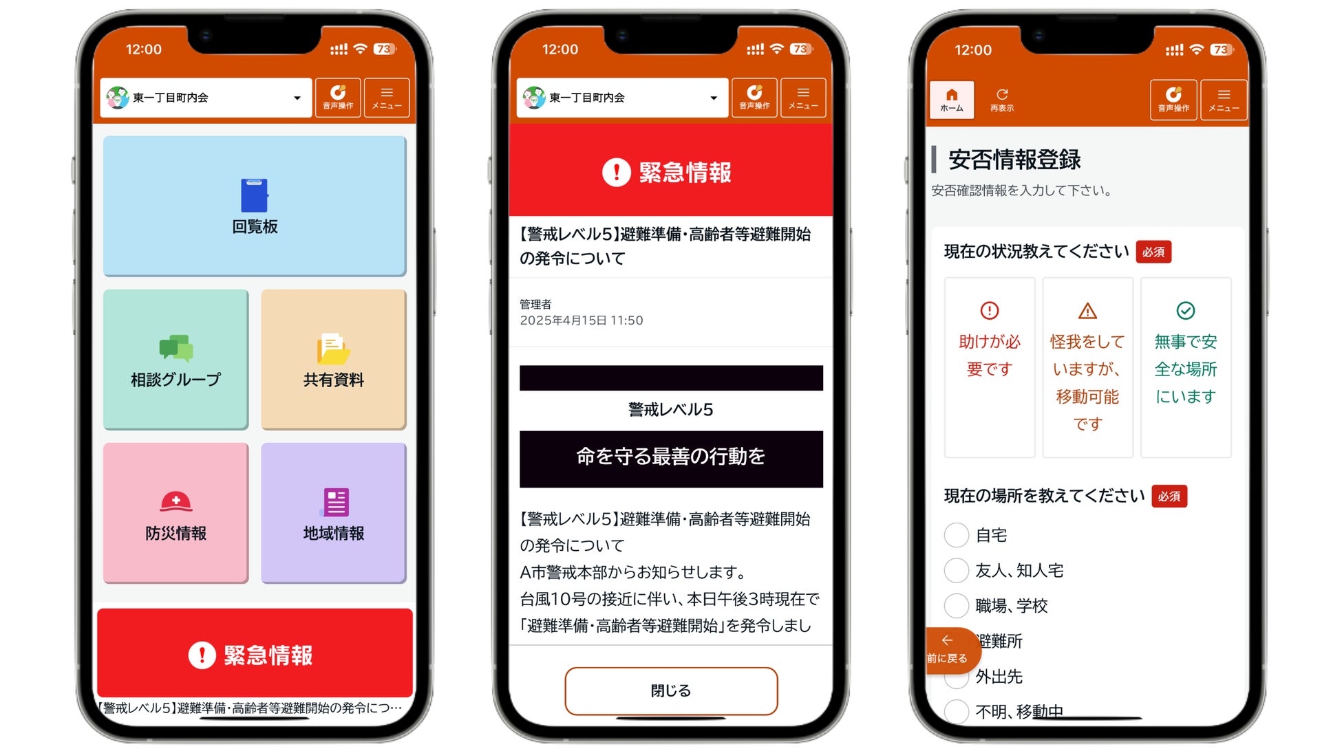 3.災害時の安否確認をスムーズに!自主防災組織内での安否確認機能を搭載