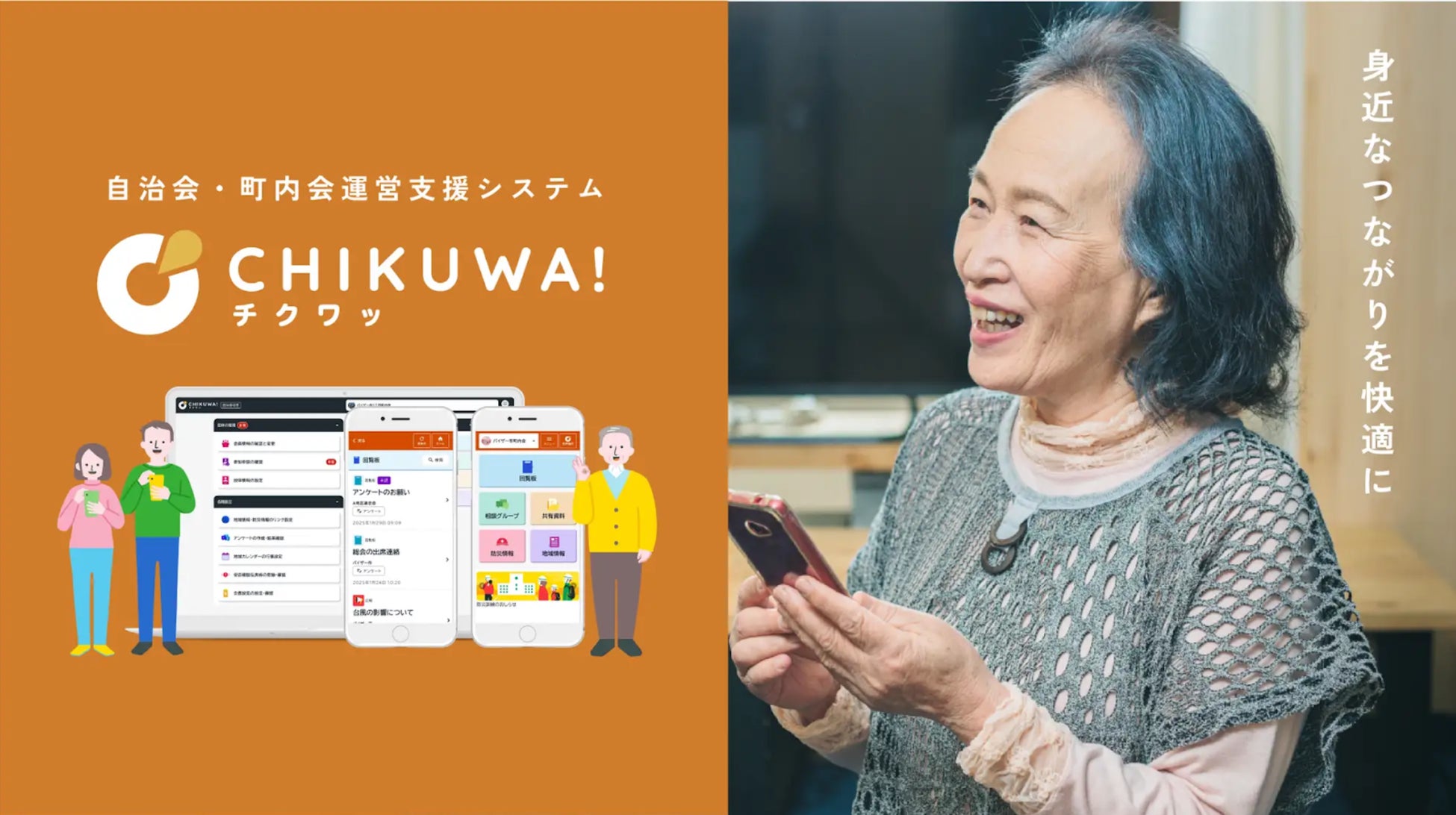 「CHIKUWA!」は、自治会運営における様々な業務の効率化を支援するサービスとして、リリース以降、複数の自治体にご契約いただいております。この度の機能強化により、地域住民の皆様の安全・安心な暮らしをより一層サポートいたします。