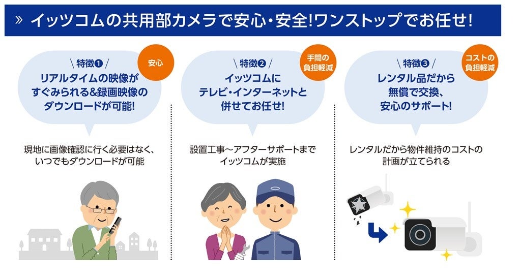 イッツコムは、集合住宅のオーナー様・管理会社様向けの新たなサービスの第一弾として、『イッツコム 共用部カメラサービス』 を10月1日から提供開始いたします。