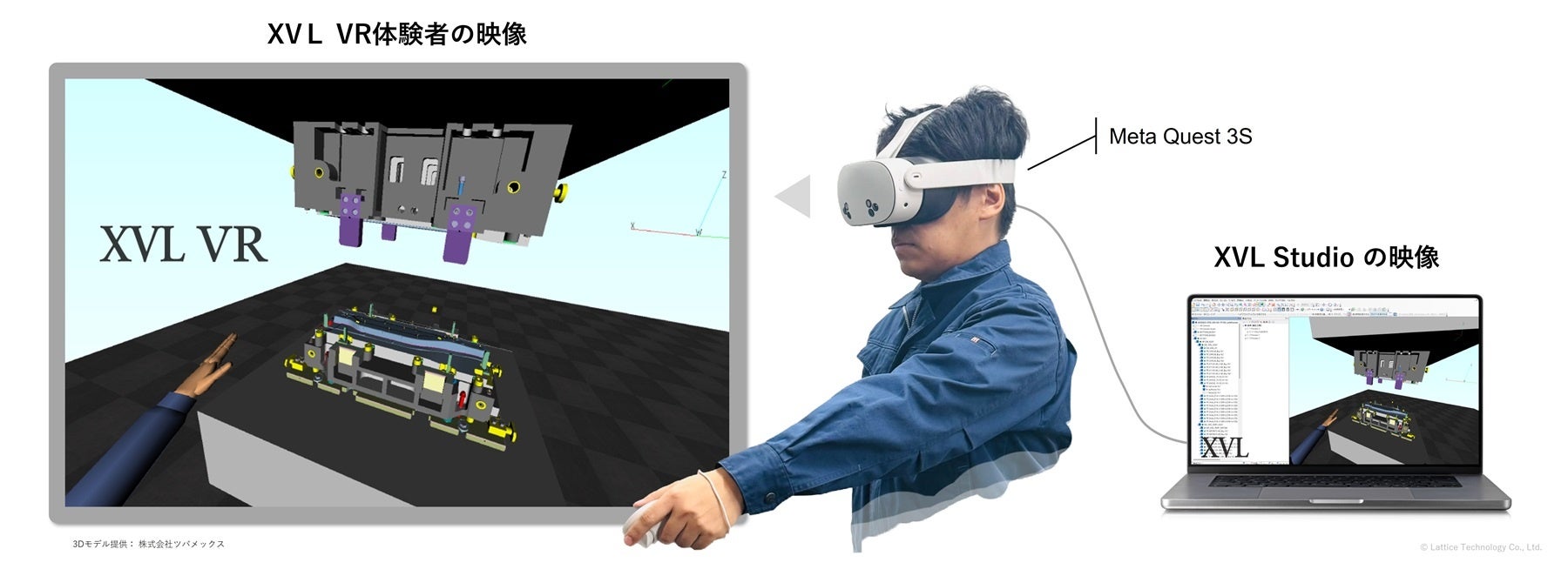 ラティス・テクノロジー株式会社(本社:東京都新宿区、代表取締役社長:鳥谷 浩志、ホームページ:https://www.lattice.co.jp/、以下:ラティス)は、軽量3Dフォーマット「XVL」を活用したVR検証ソリューション「XVL Studio VRオプション」(以下、XVL VR)において、新たにVRデバイス「Meta Quest 3S」への対応を開始したことを発表します。本対応は、製造業における多様なIT環境や利用デバイス構成にあわせて、XVL VRをより柔軟に活用いただくための対応拡張です。既存のXVL VR環境にMeta Quest 3Sを適用することで、VR活用の選択肢を広げ、製造業における3D活用を支援します。