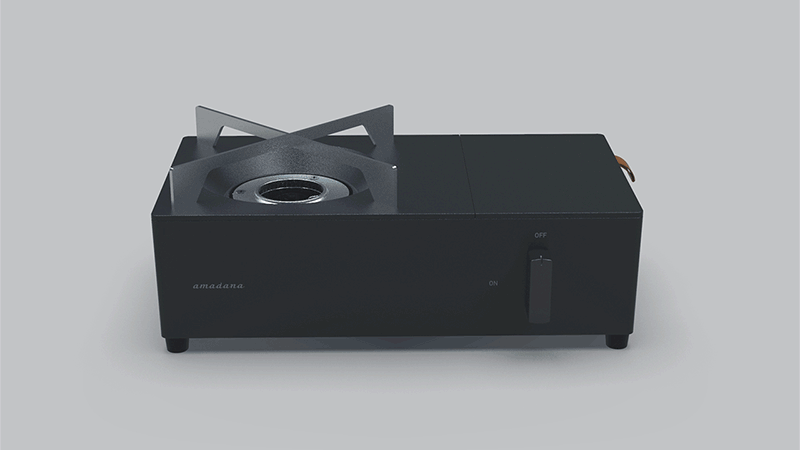 カセットコンロという慣れ親しんだ調理器具の概念を一から見直し、新しい価値を再構築した「amadana CASSETTE CONRO 」。まず、独自開発の「クロス型 五徳」×ニチネン製の「内炎式バーナー」のコンビネーションにより、今までの五徳では温めるとき安定しなかったステンレスマグなどの小さいサイズの“直火”が可能に。サイズも業界最小クラスで、専用キャリーケース(開発中)を使えばカセットコンロとしての携帯性もより一層向上。コーヒーの温め直しやミニ鉄板焼きなども可能になり、カセットコンロによる高火力調理をより気軽に享受できるように設計しました。