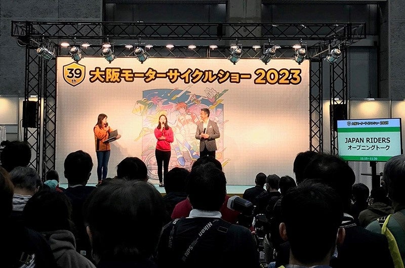 当日のイベント情報を中心とした、ショーのスタートをJAPAN RIDERSアンバサダー梅本まどかさんたちの軽快なトークでステージを盛り上げます。