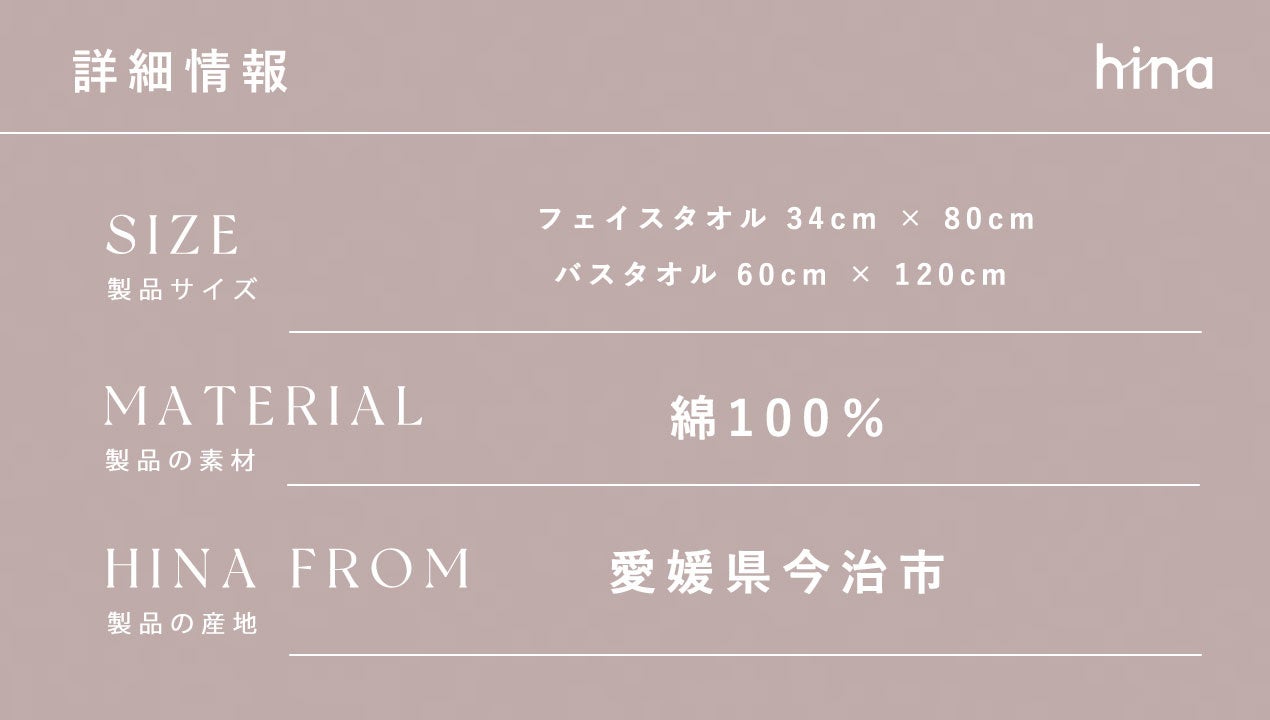 HINA beauty towel は日本国内、愛媛県今治の工場を生産先として採用しております。